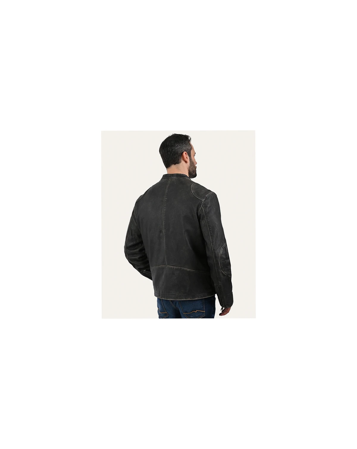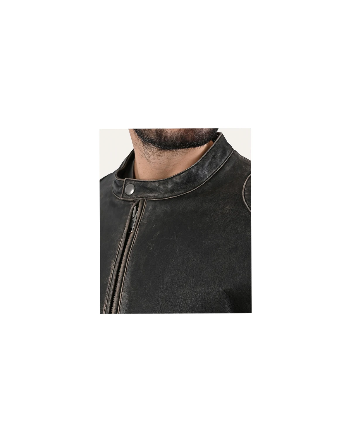 This racer jacket is a piece that combines classic style with a contemporary touch. Made of sheepskin with a vintage finish, its design stands out for the ornamental seams on the shoulders, adding an innovative touch. Its hidden design rest pockets and adjustable collar with metal clasp make it a practical and stylish garment, perfect for any season.
