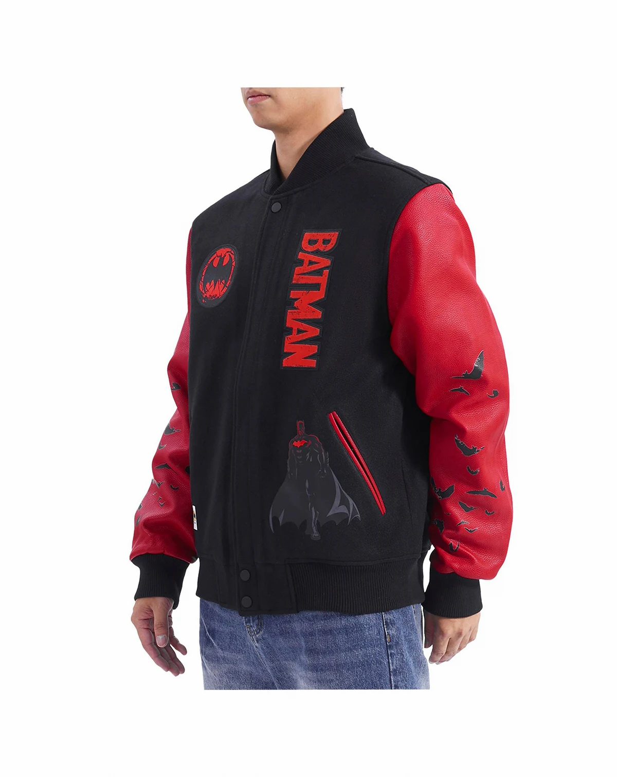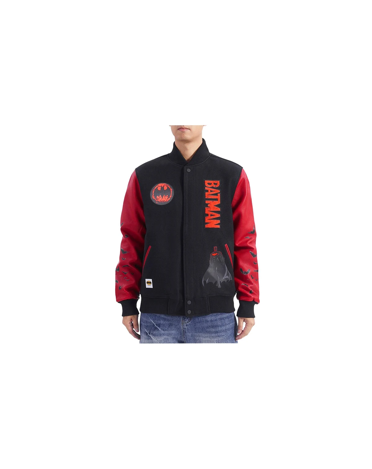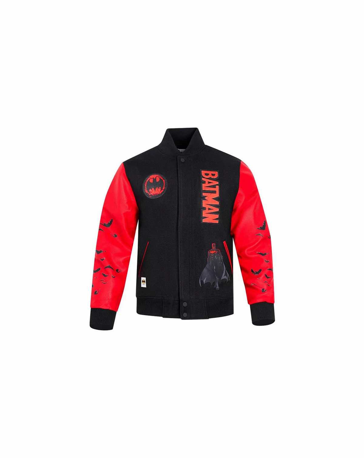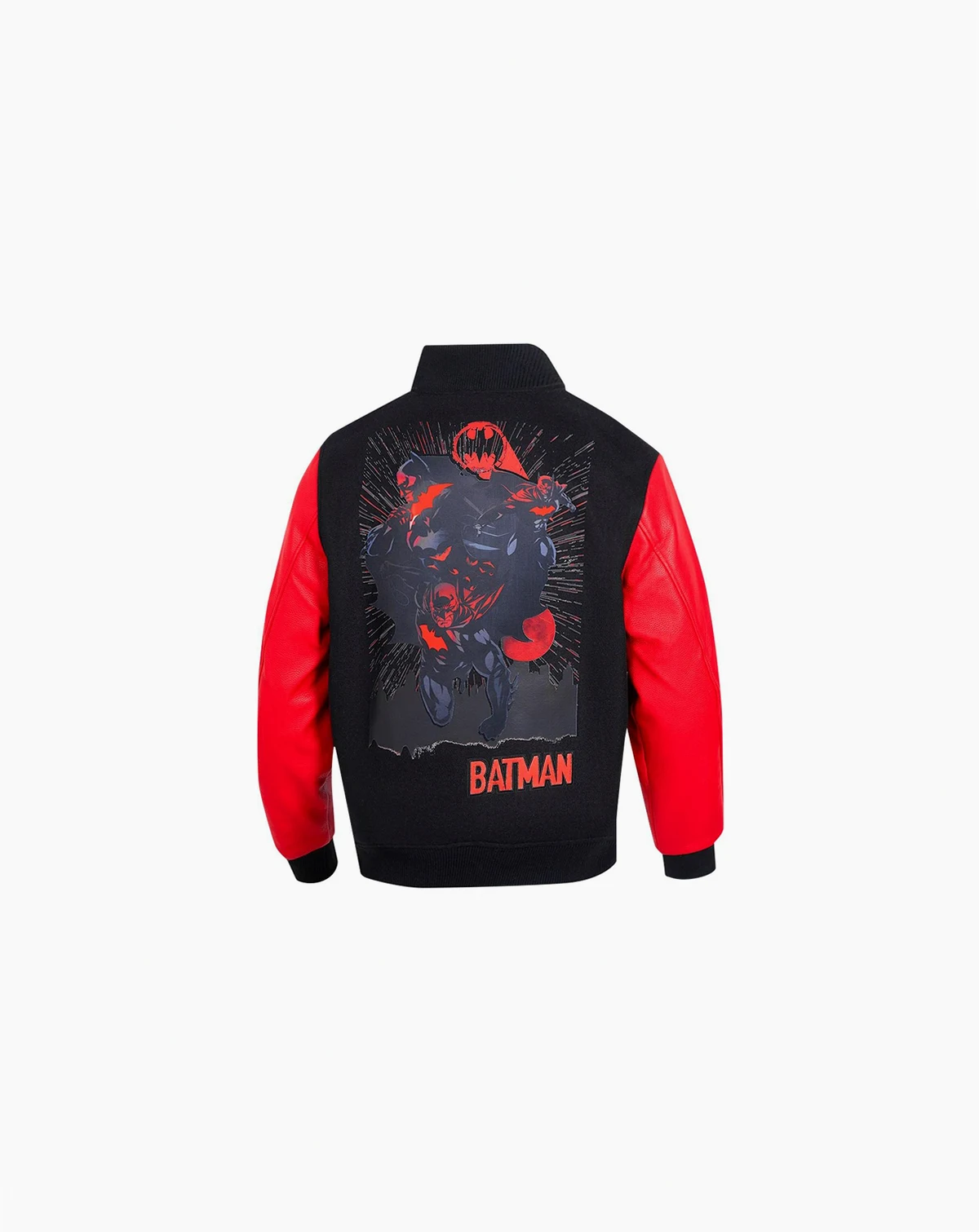 Make an offer they can't refuse with this Batman Comics Full-Zip Varsity Jacket from Freeze Max. It features faux leather-polyurethane sleeves and heat-sealed fabric appliques for a classic varsity jacket aesthetic. The quilted lining and heavyweight build make this jacket perfect for colder nights out on the town.