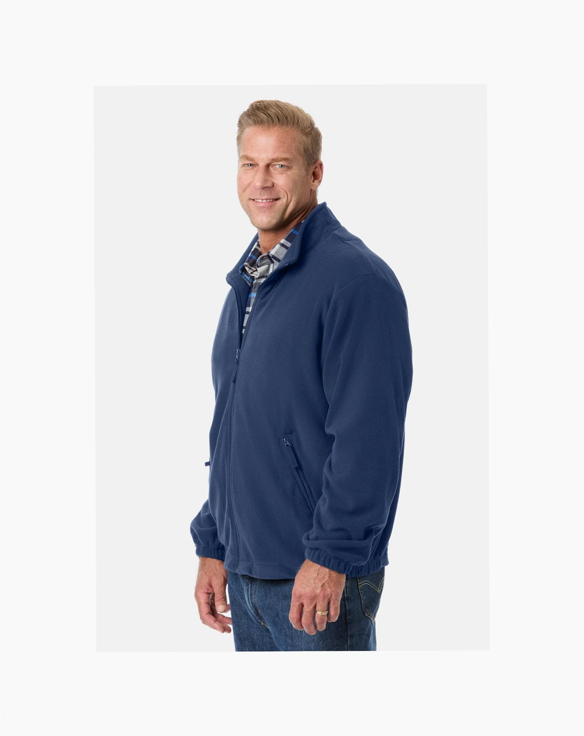 Make our Explorer Plush Fleece Full-Zip Jacket a staple of your wardrobe. Its soft yet rugged fleece performs perfectly for all-season comfort, and the fit is like nothing else: comfortable, generous, and designed exclusively for the big and tall guy. Comfortable, relaxed fit. Stand up collar. Long sleeves with elastic cuffs. Full zip front. Elastic waist. Big length approx. 32" Tall length approx. 34"100% polyester micro fleece. Machine wash imported NOTE: Ink Blue Snowflake and Ink Blue Geometric prints may not align perfectly across the chest.