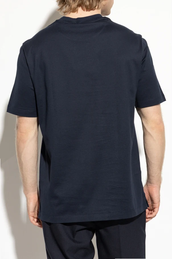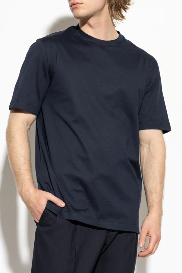 Experience understated sophistication with this navy crew neck T-shirt from Brioni , a house synonymous with Italian sartorial excellence. Crafted from premium, supple cotton for exceptional comfort and a touch of flexibility, it features a classic silhouette with short sleeves and a perfectly tailored regular fit.