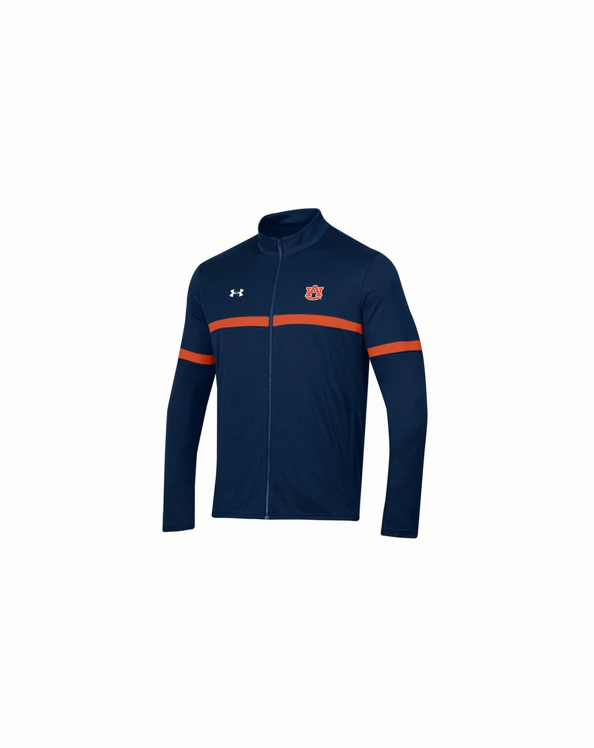 Prepare for victory with the Under Armour Auburn Tigers 2023 Assist Warm Up Full-Zip Jacket. This lightweight jacket features heat-sealed Auburn Tigers graphics and a mock neck for added warmth. The two side pockets provide convenient storage, while the locker loop makes it easy to hang up. Whether you're cheering on the Tigers at Jordan-Hare Stadium or just relaxing at home, this jacket is the perfect way to show your team spirit.