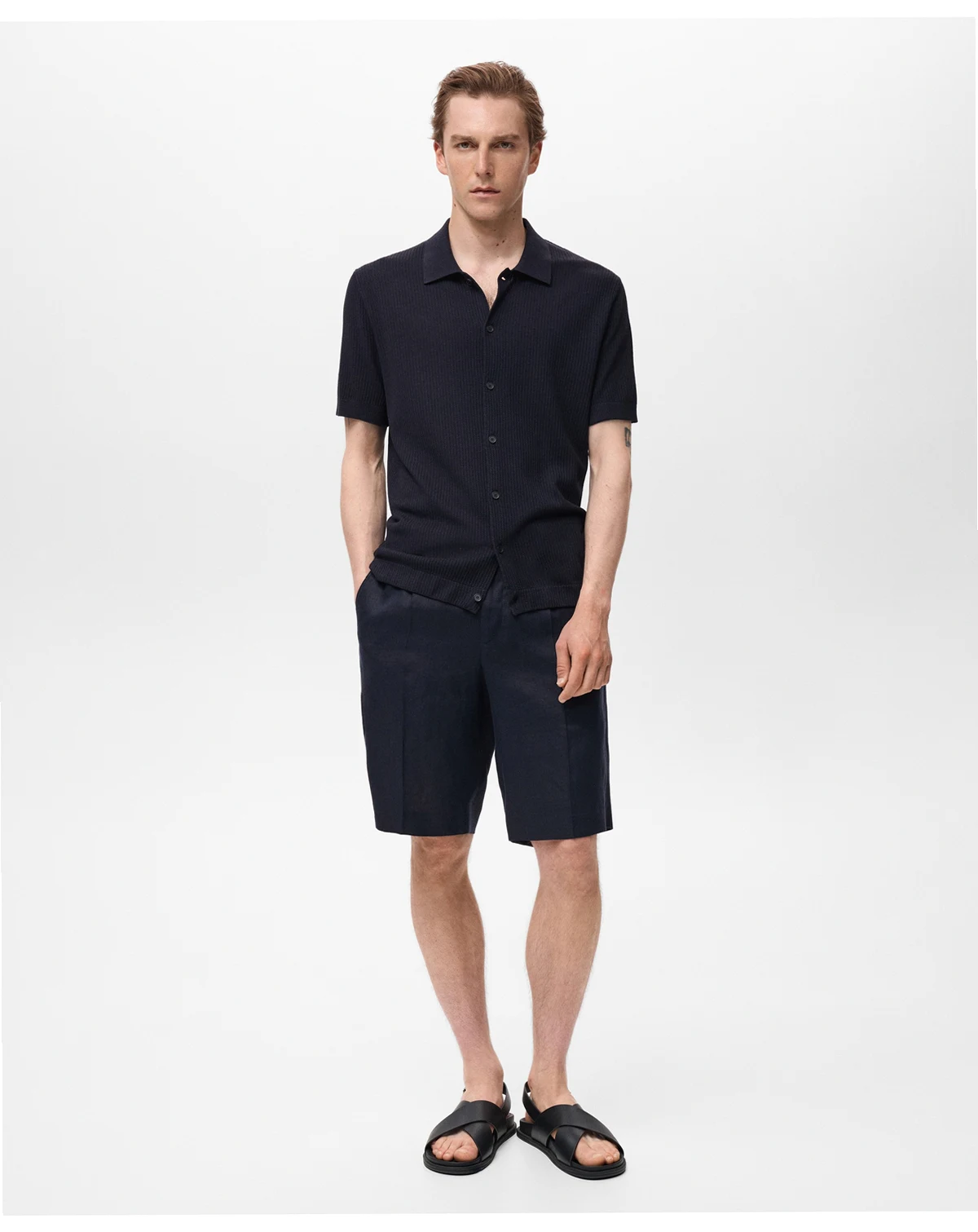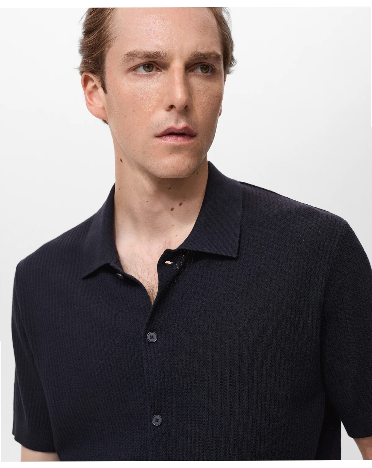 Bring comfort and detail together in the Rib-Knit Shirt from Mango. Made from cotton, linen, and viscose blend fabric, this regular fit shirt features rib-knit design, short sleeves, ribbed collar, sleeves and hem, and straight hem.