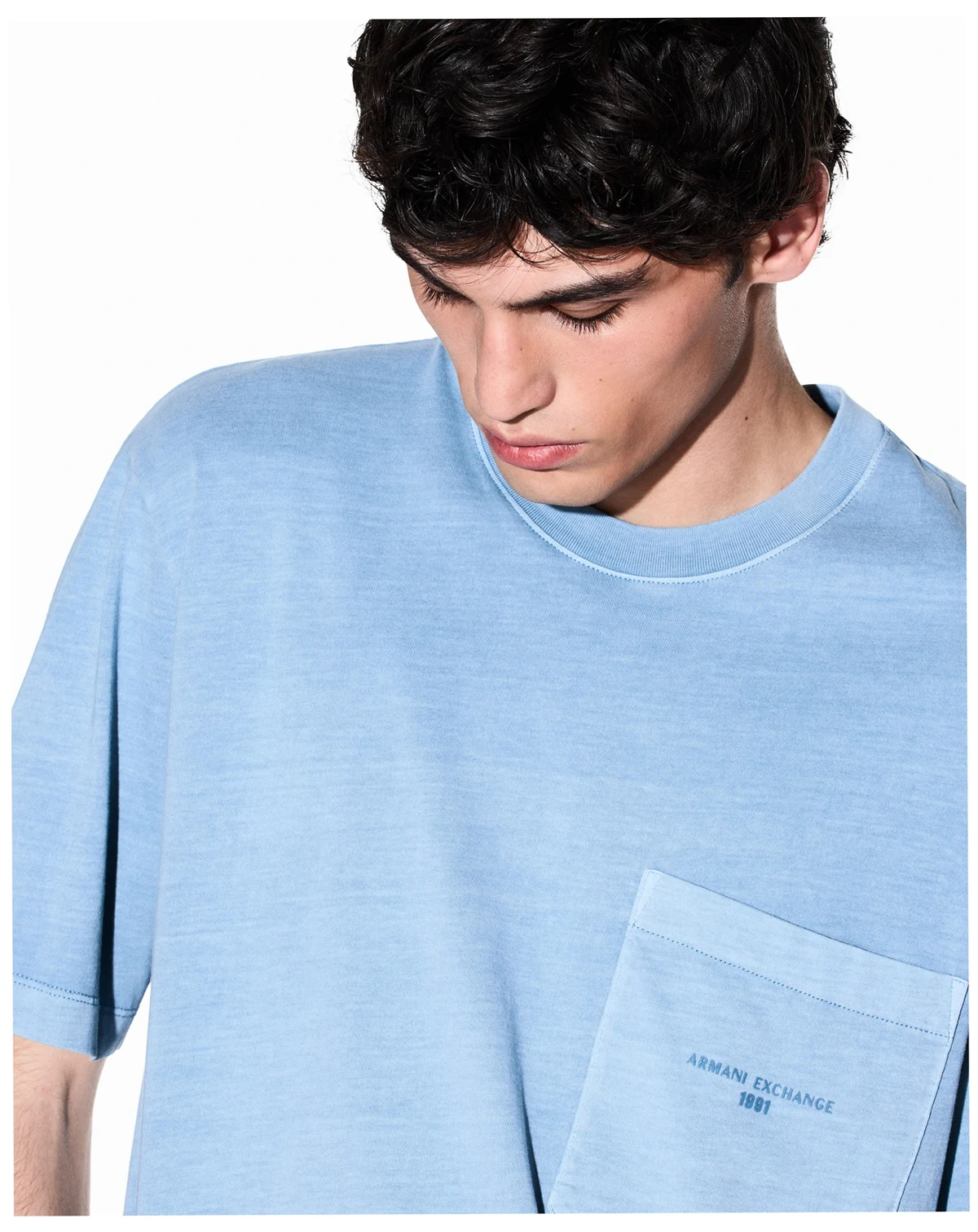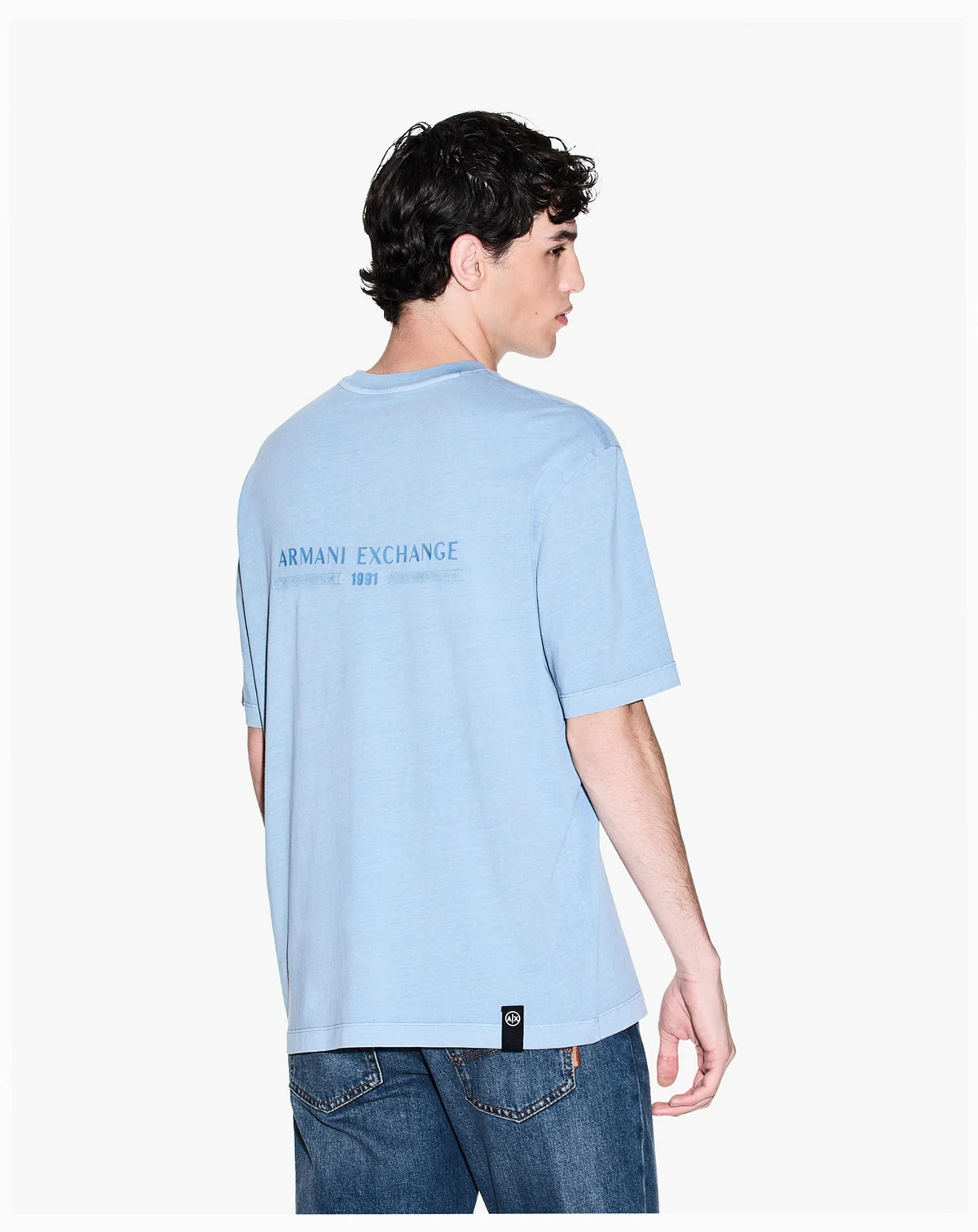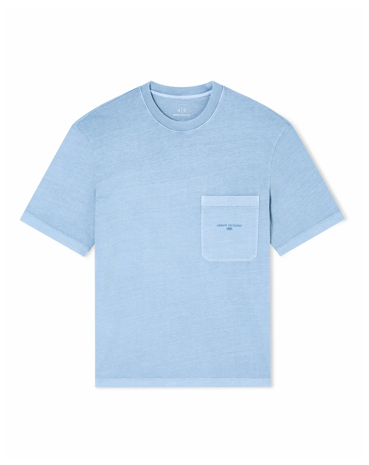 This stylish crewneck t-shirt features a convenient front pocket and a striking back graphic that proudly displays "Armani Exchange." Perfect for casual wear, it combines comfort with a touch of designer flair.