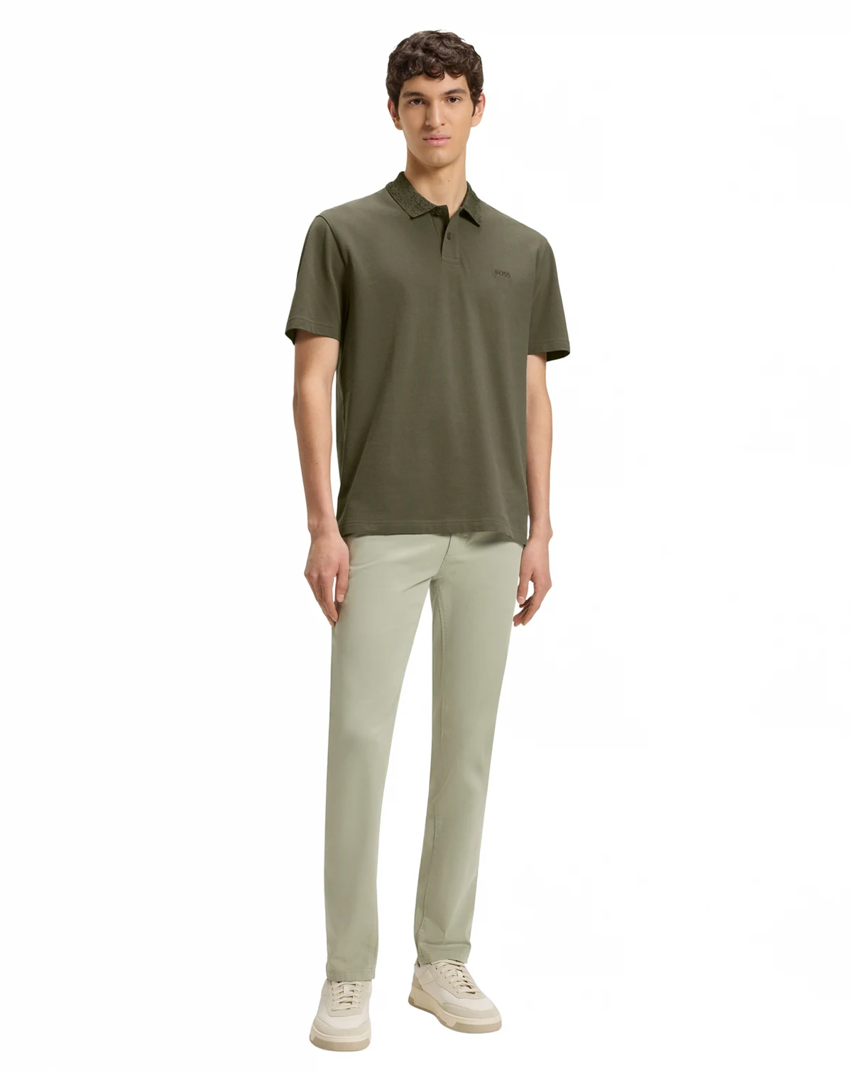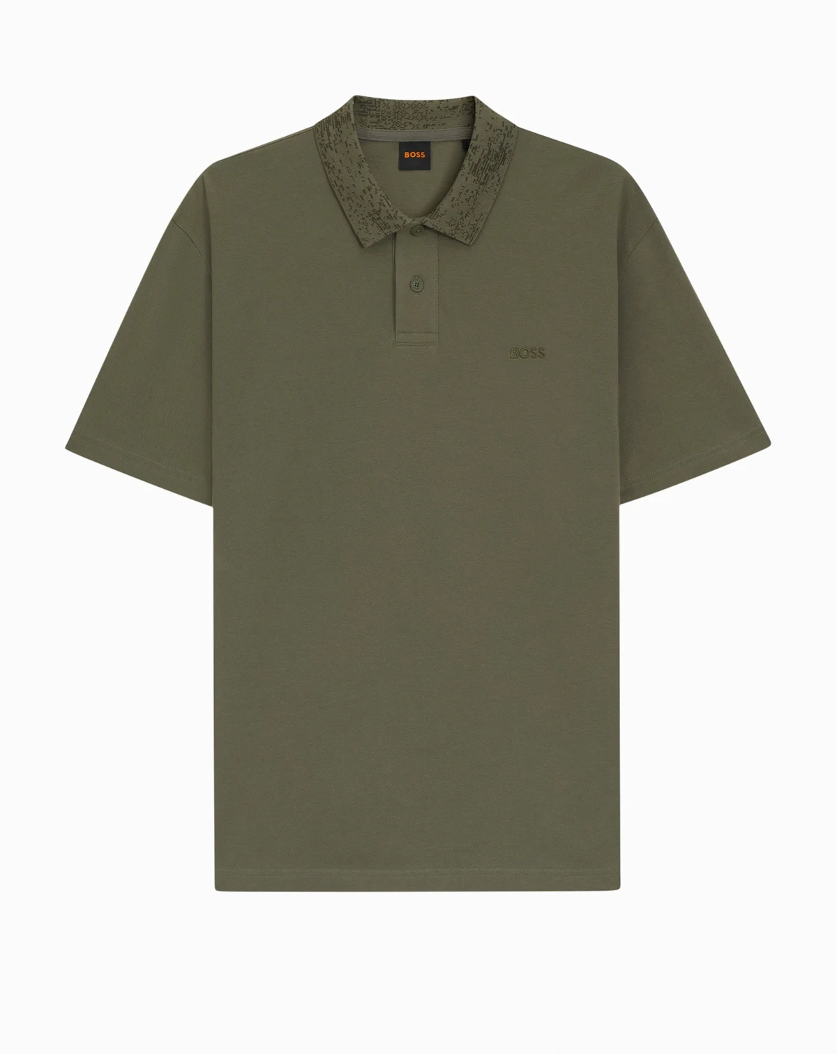 Topped with a patterned collar for creative contrast, this BOSS Menswear polo shirt has a laid-back fit for casual appeal.