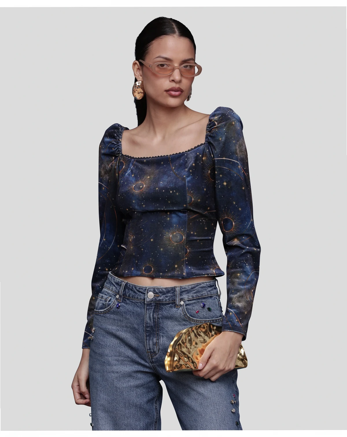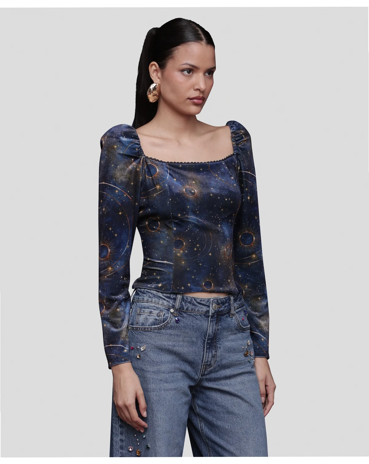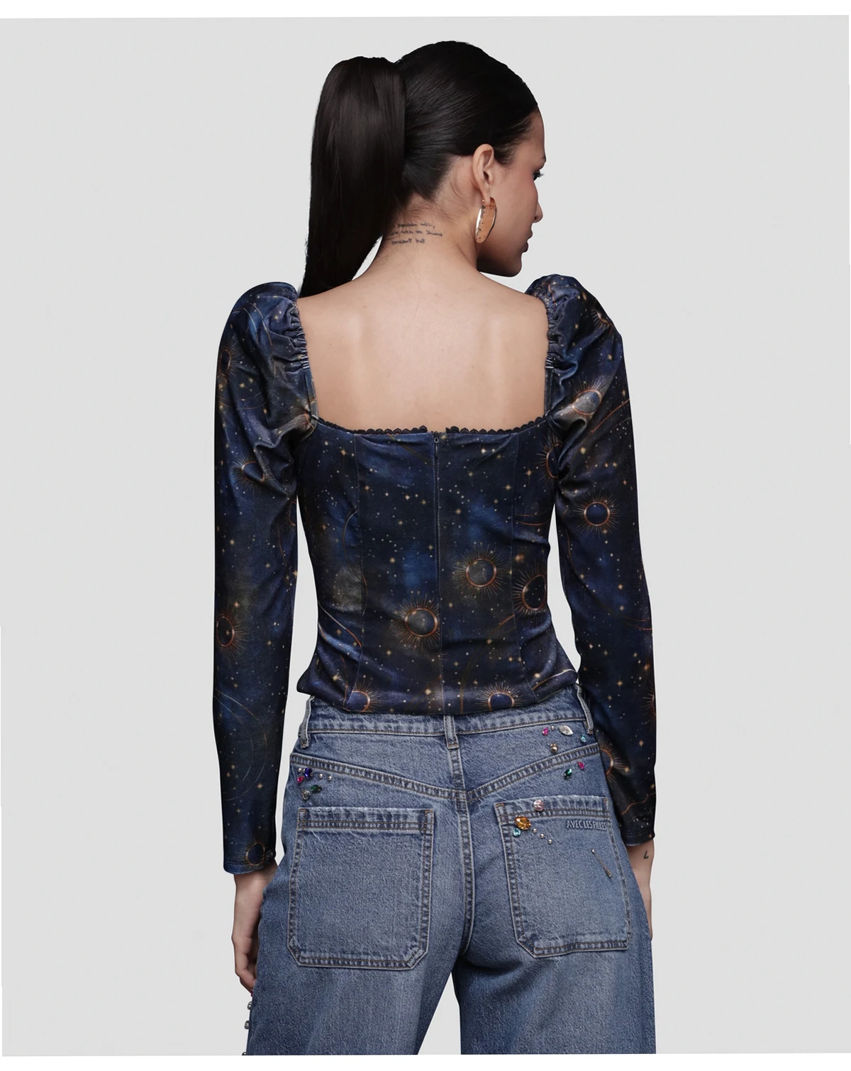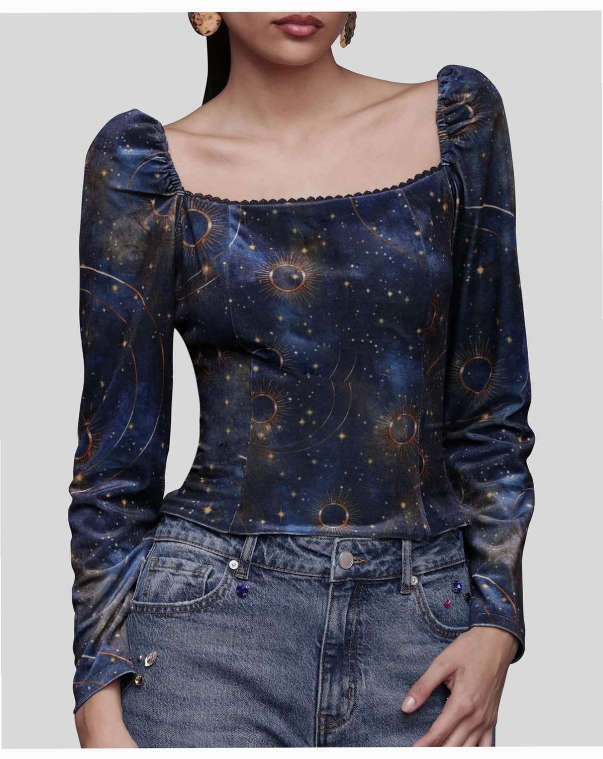 Shine in subtle elegance with this Avec Les Filles velvet top, styled with a square neckline and fitted long sleeves to frame the piece with refinement. A lined interior and back zip provide smooth, reliable structure.