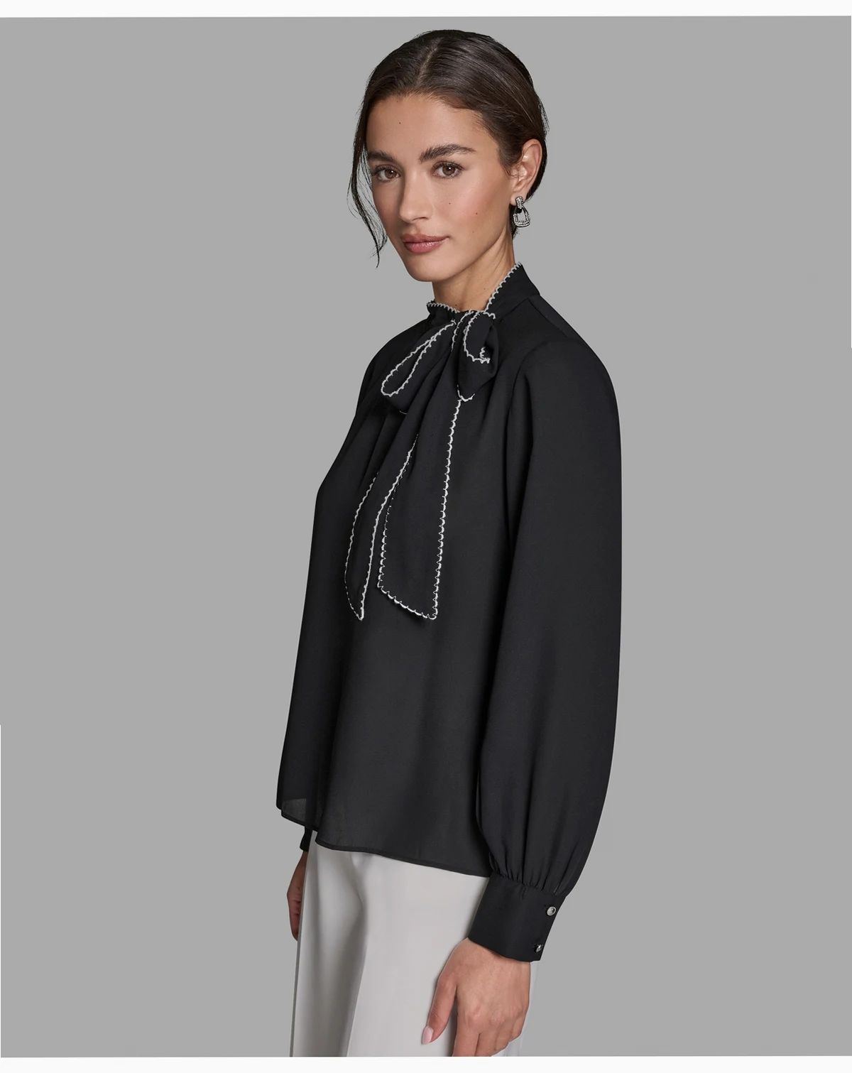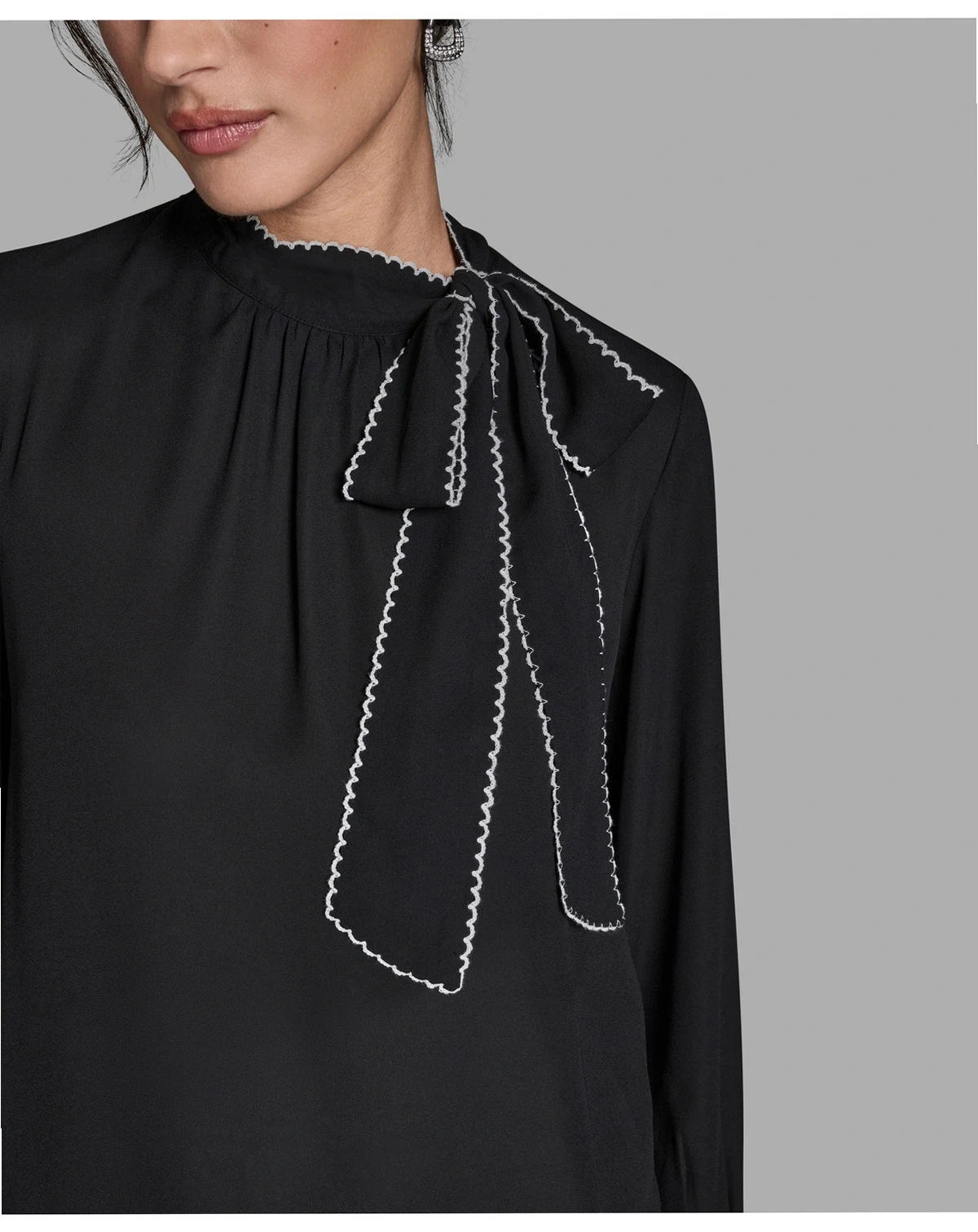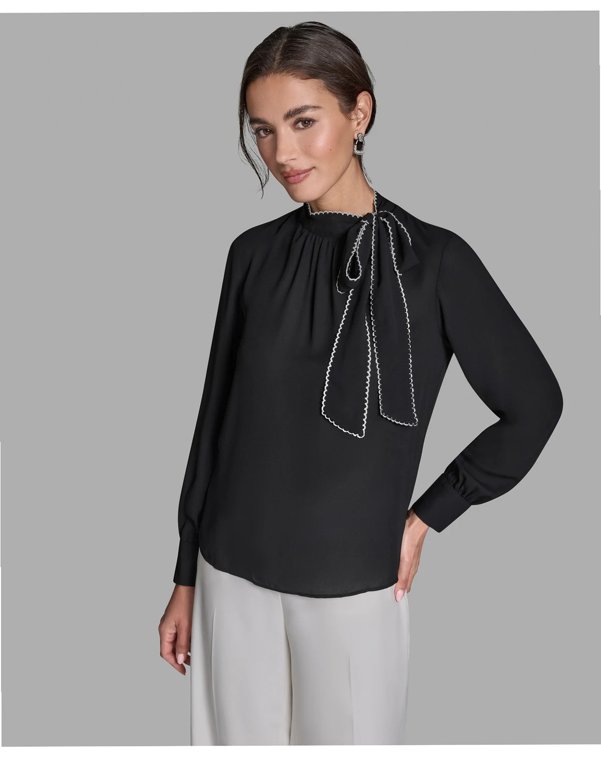 Women's Long-Sleeve Tie Neck Top