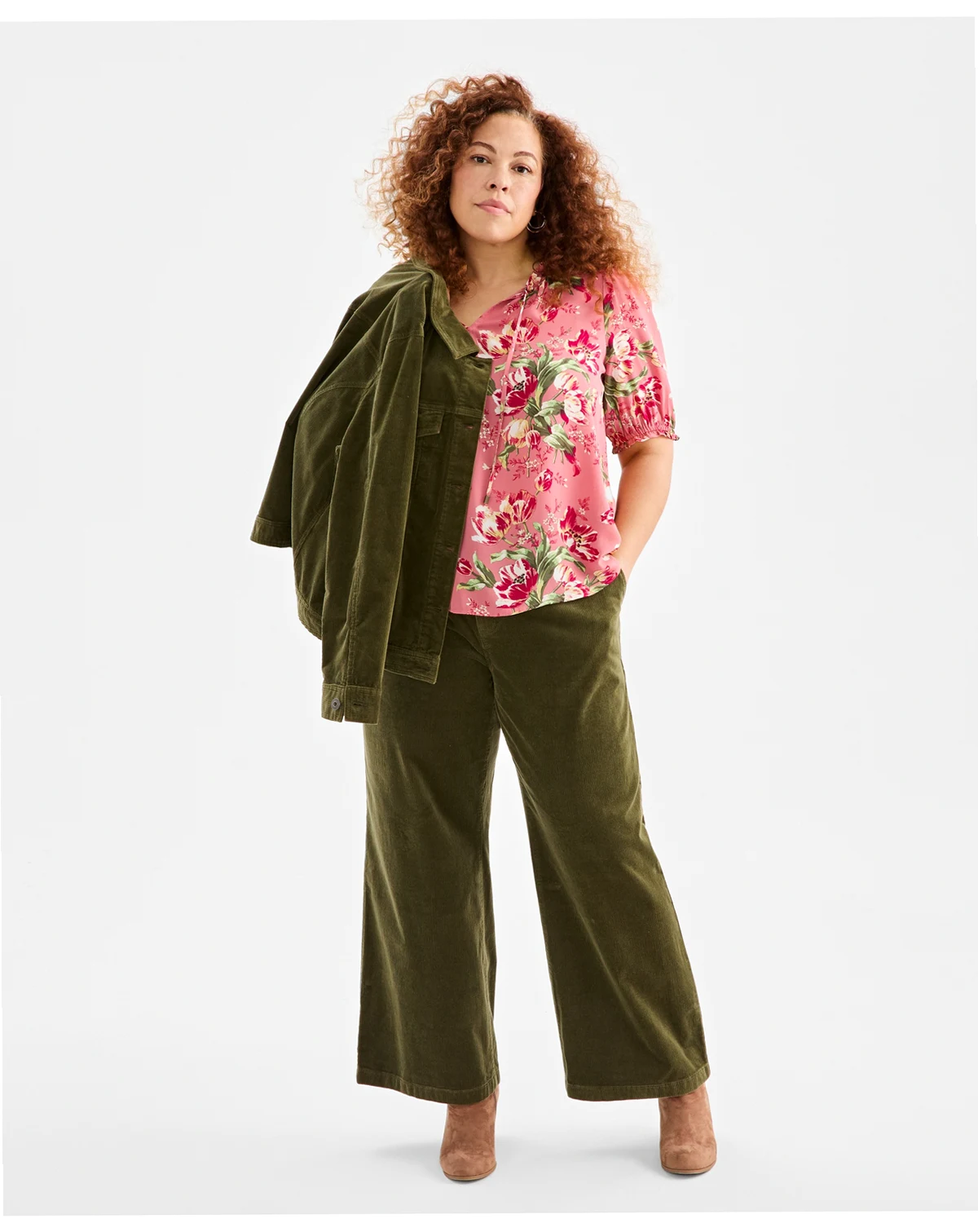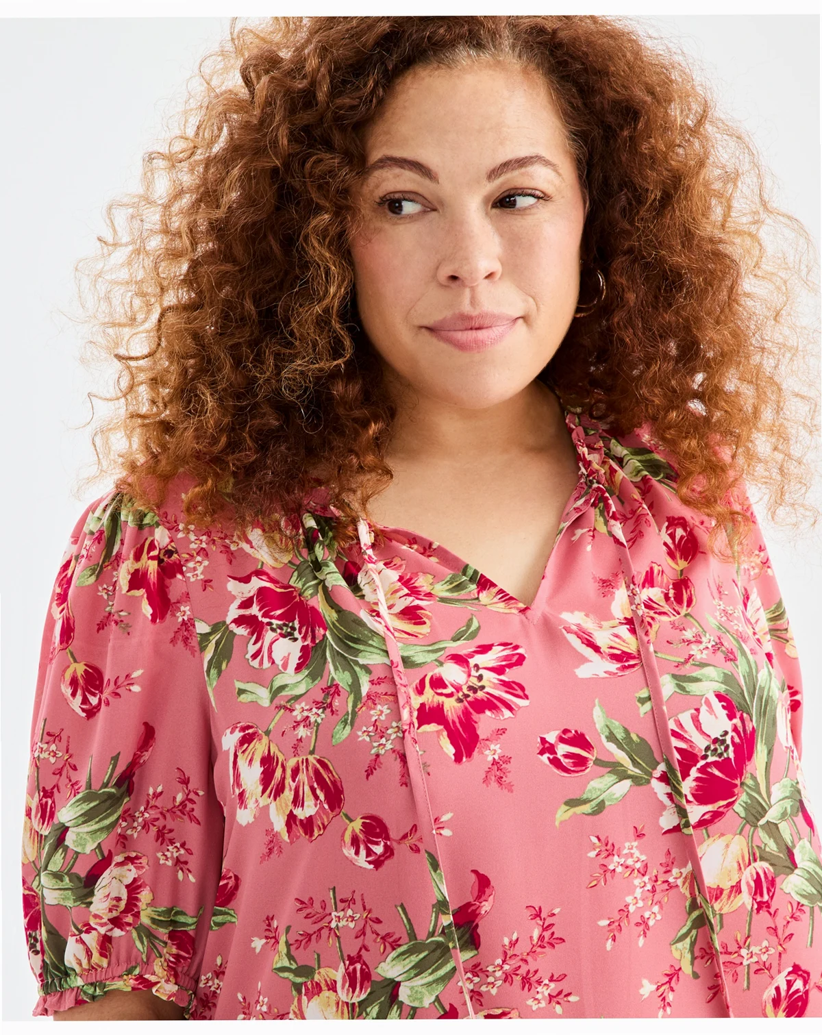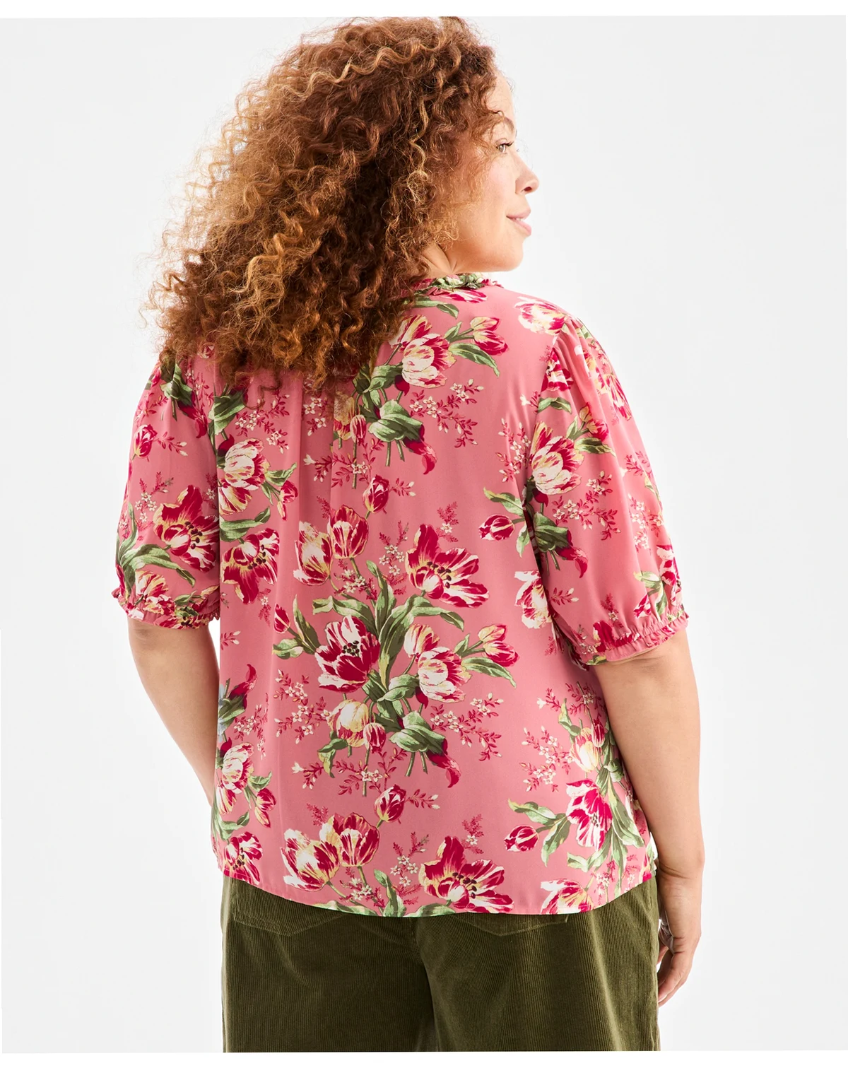 Plus Size Floral Printed Puff-Sleeve Blouse, Macy's Exclusive