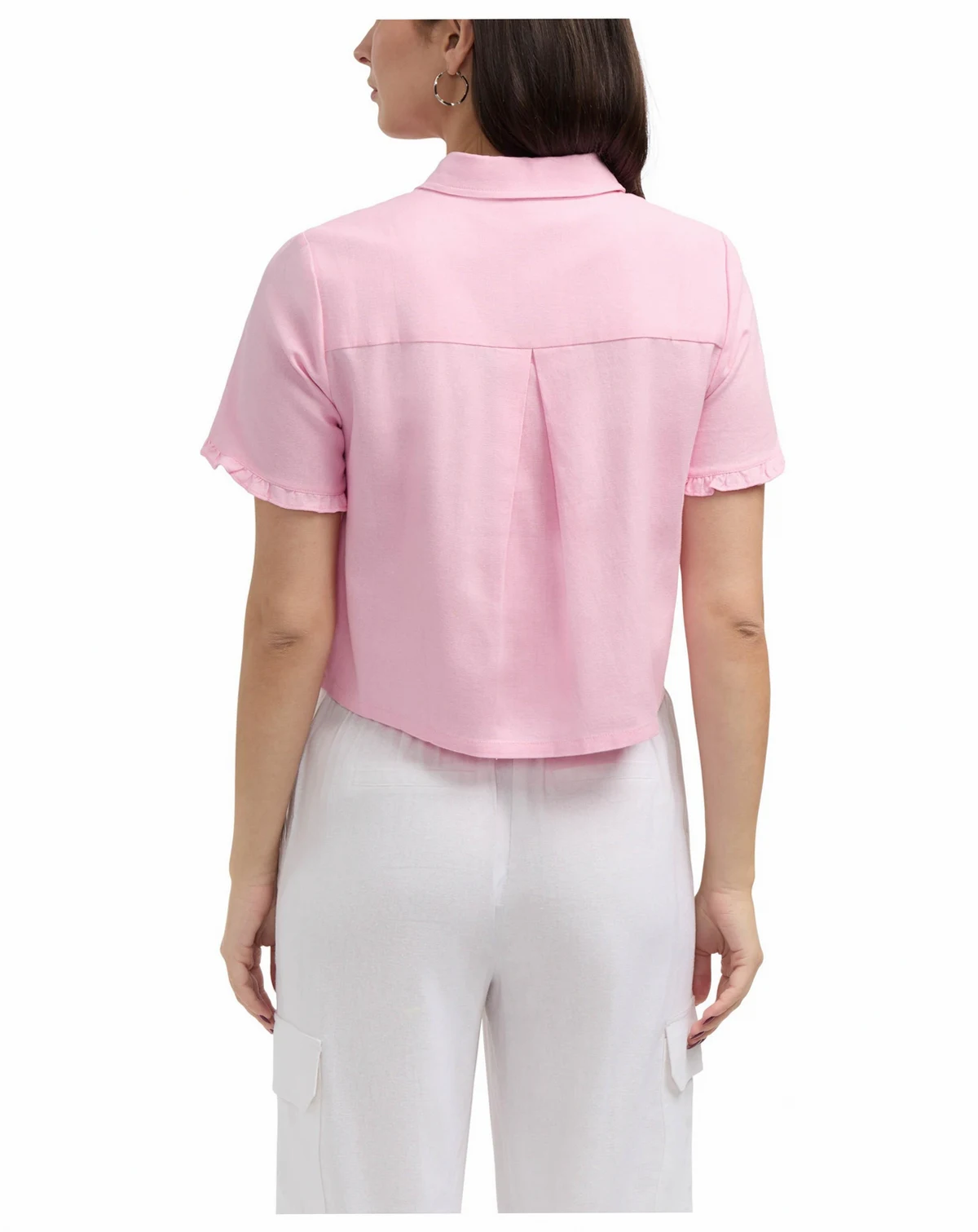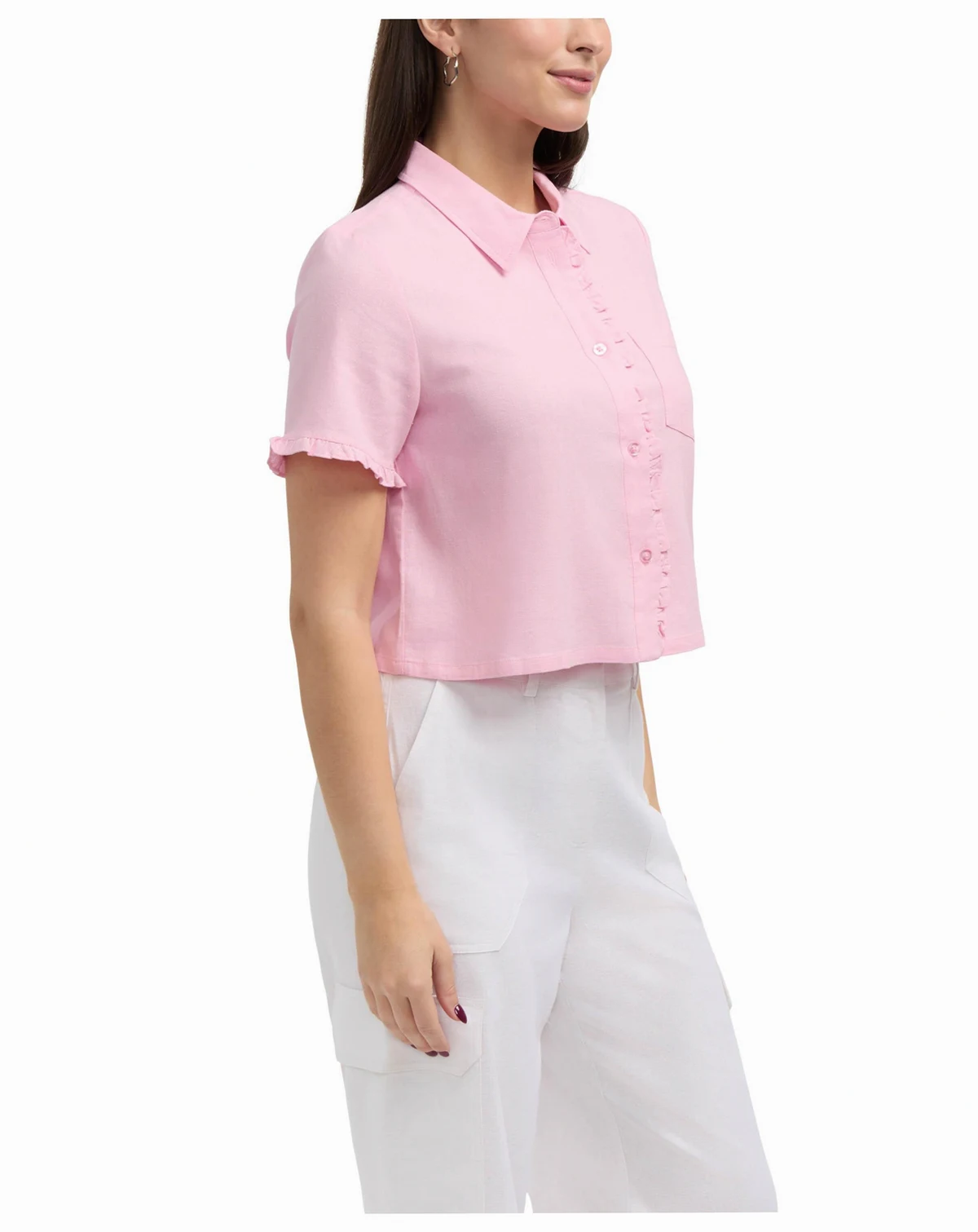 Women's Button Front Shirt with Ruffle Detail