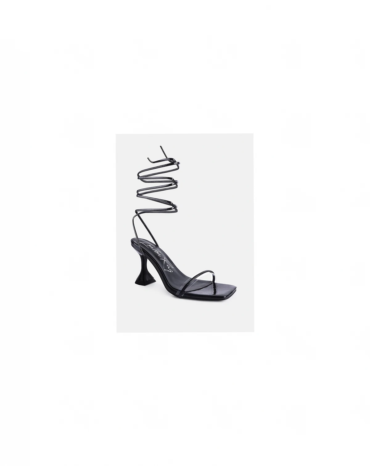 Crafted with patent faux leather, these lace-up sandals with a spool heel offer a chic and practical footwear option. Featuring a light cushion insole that reduces stress on your feet, they provide comfort and look extremely stunning and exquisite. These sandals are versatile and are bound to complement all your summer dresses perfectly! Type: Sandals Upper Material: Faux Leather Light Cushion Insoles Outer Sole: TPR Open Square Toe Translucent Vamp Lace-Up Design Spool Heels SH2837