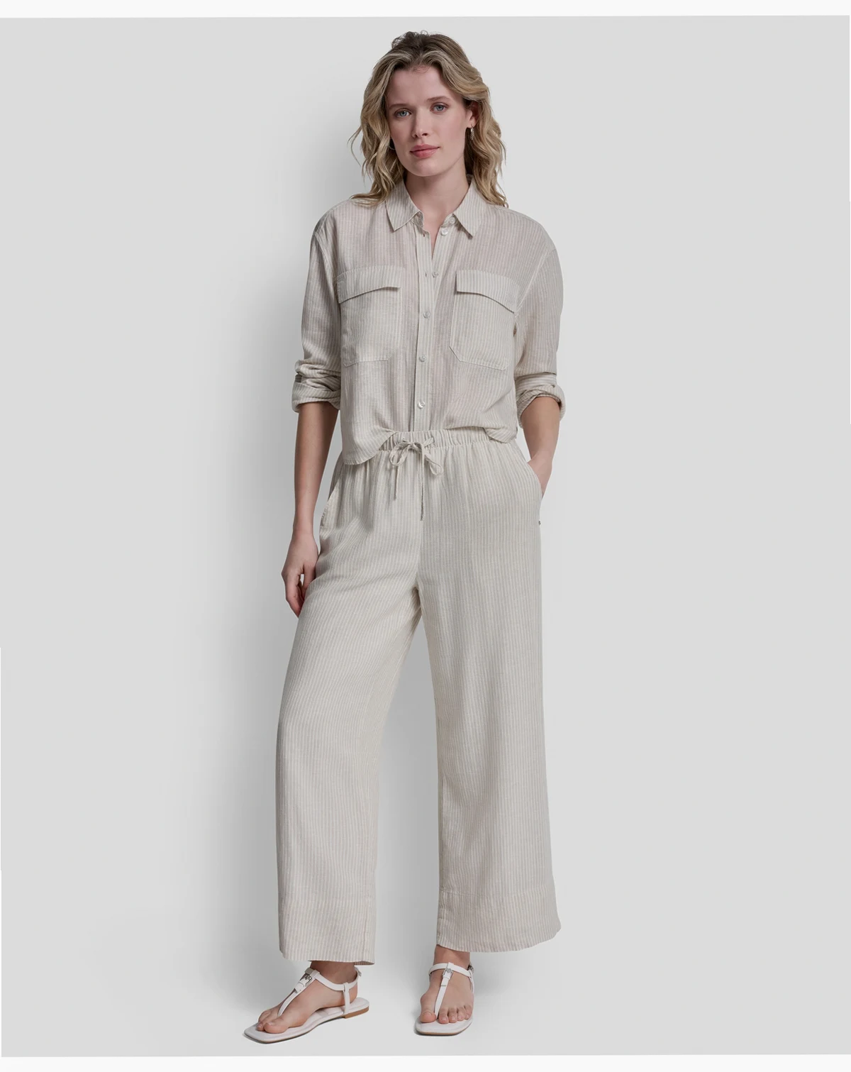Embrace all-day comfort with these DKNY Jeans high-waist pants, designed with a pull-on style. The drawcord-adjusted elastic waistband and front slant pockets offer both convenience and contemporary appeal.