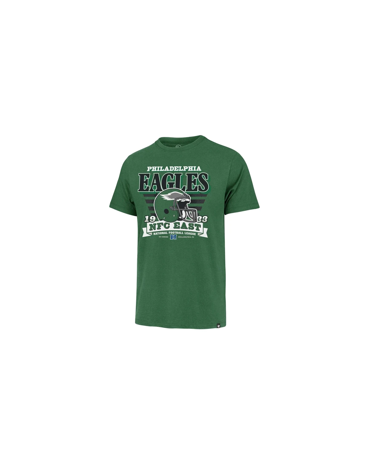Relive the glory days of a legendary franchise with this Philadelphia Eagles Stripe Splash Franklin Throwback T-shirt. This '47 Brand T-shirt features a bold throwback helmet logo with a striped background and team wordmark printed across the chest, capturing the spirit of a deep in the trenches, hard-nosed era of football. Lightweight cotton construction ensures unmatched comfort, while the tagless collar provides a smooth feel. The woven brand clip tag at the bottom hem and graphics of the team's division with established year contribute to the look, making it a perfect shirt for any die-hard Philadelphia Eagles fan looking to celebrate the team's rich history.