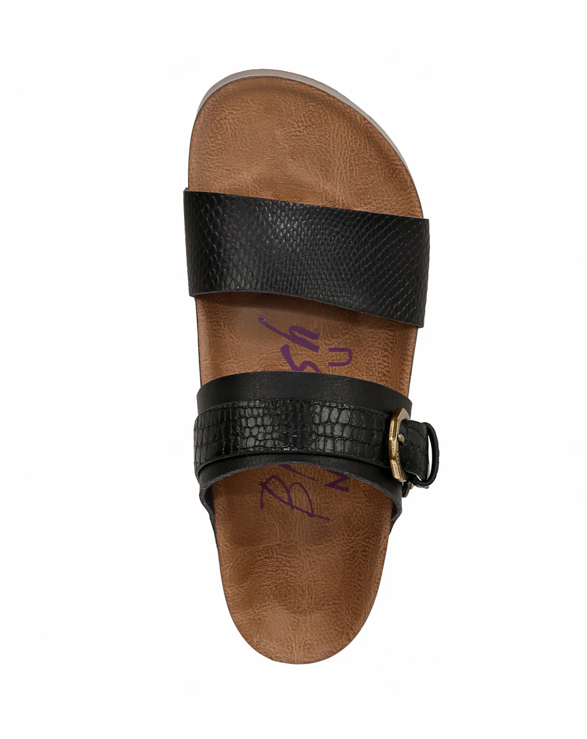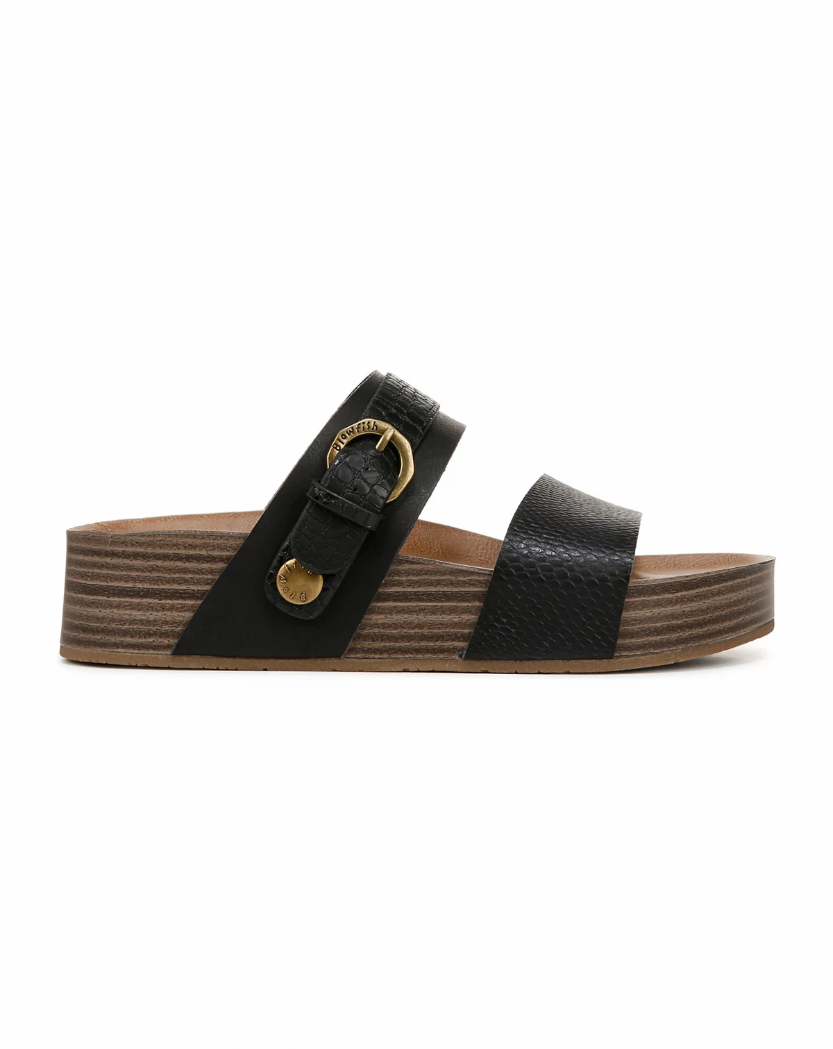 The Marge flatform sandal features a lightweight stacked sole with a comfy 1.5" molded footbed. Don't forget the details, like the branded button and metal buckle closure and the multi-wear strap.
