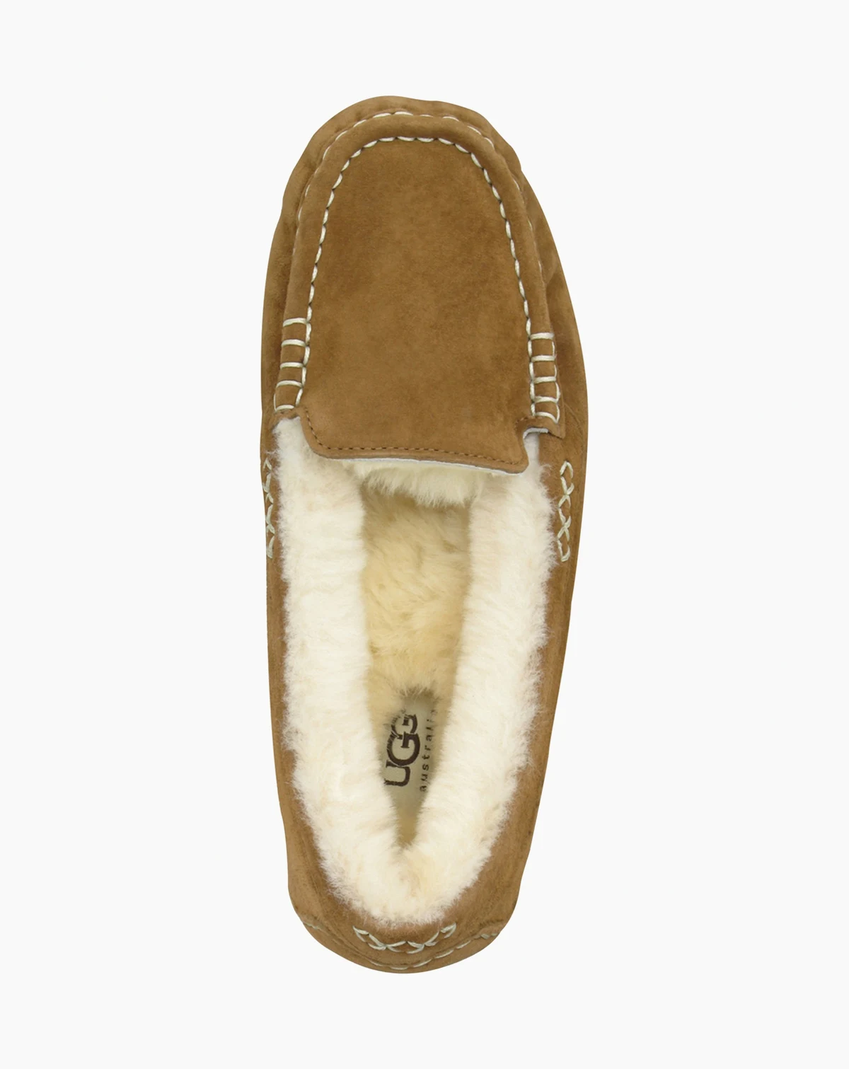 Classic moccasin style pairs with plush wool linings on these Ansley slippers from UGG® for a warm and cozy accent any time of day.