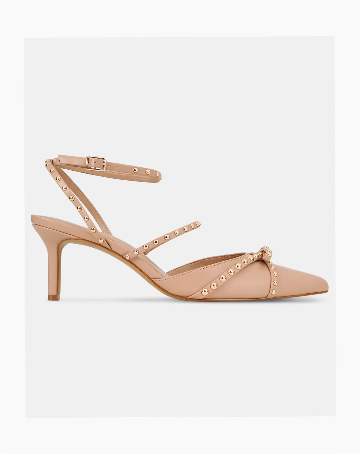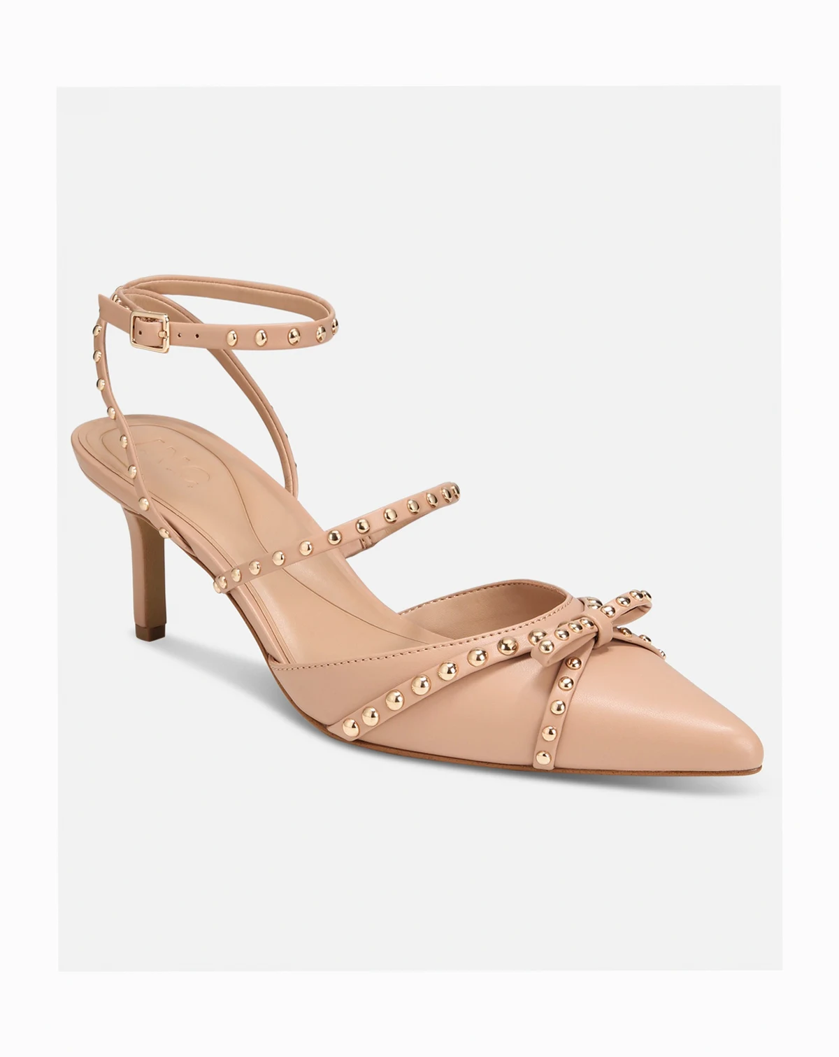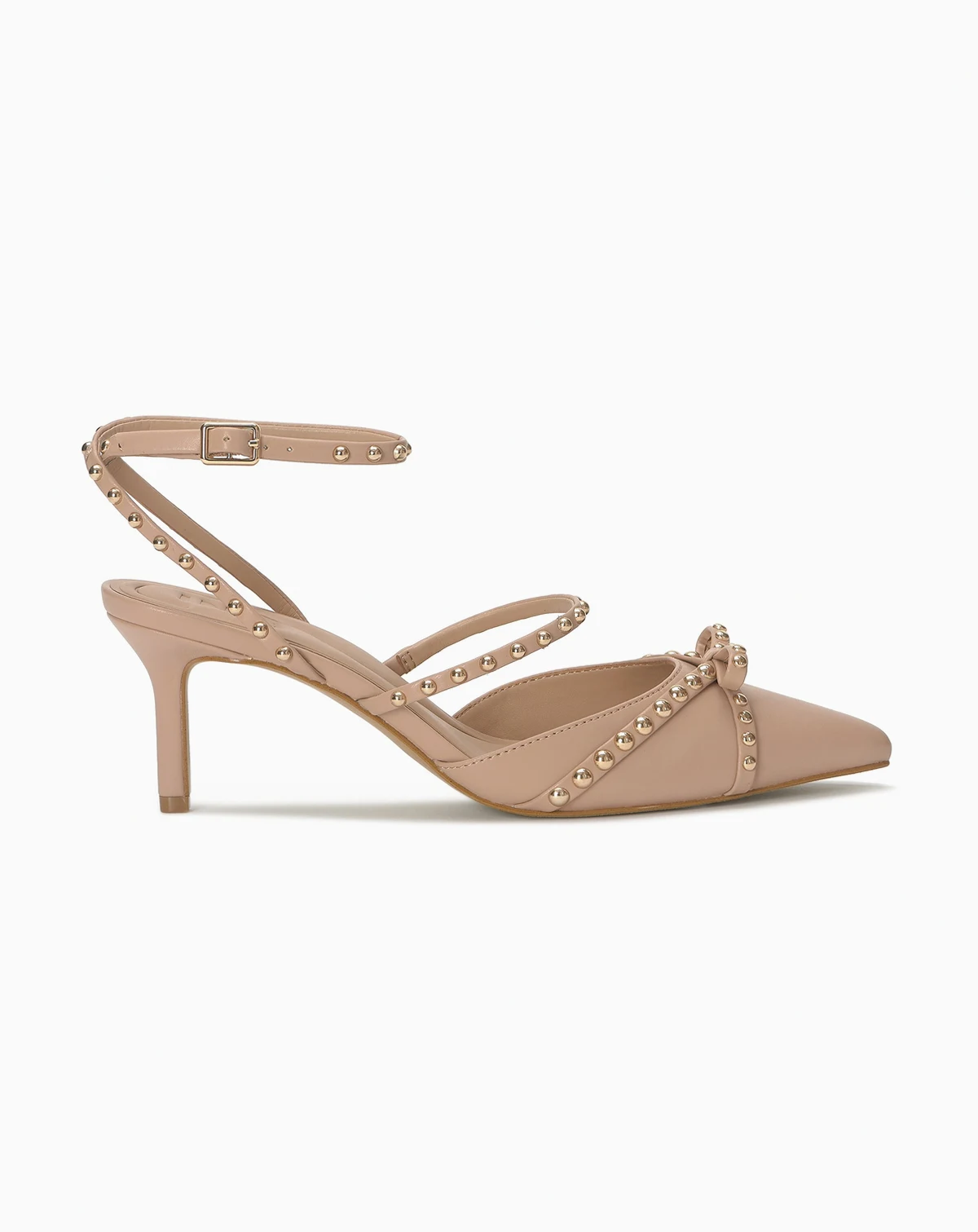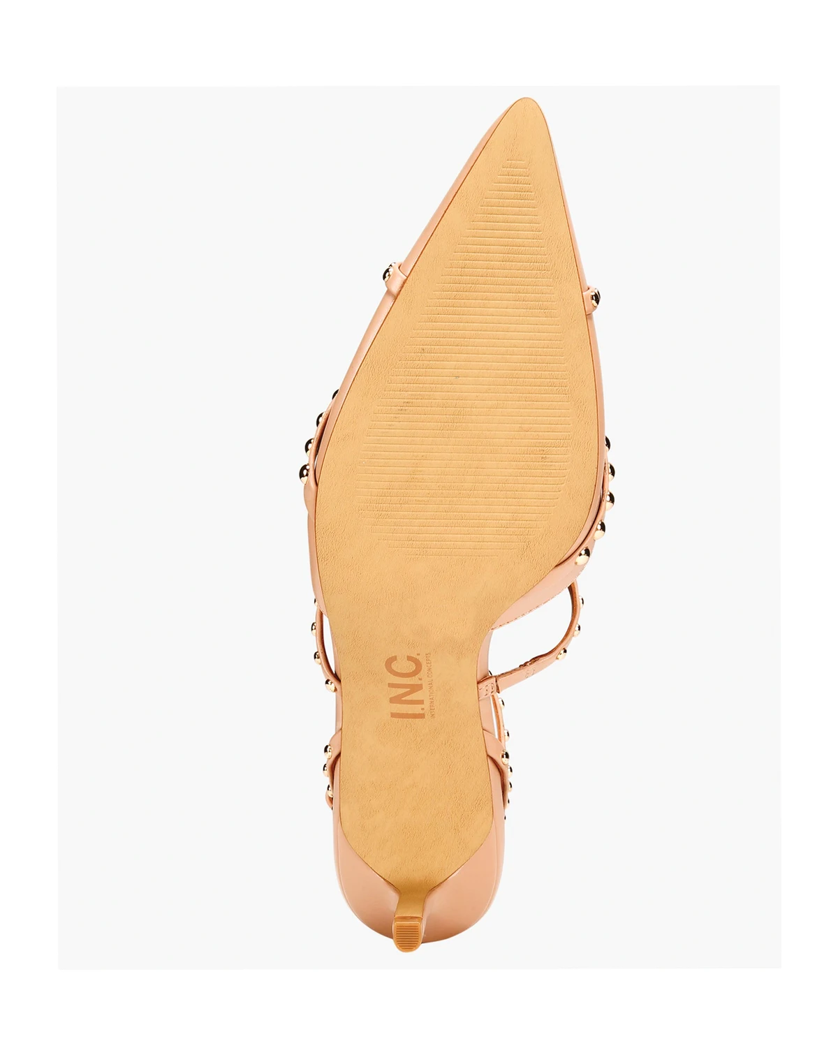 Add a touch of glamour to your look with these I.N.C. International Concepts Gyda pumps, styled with a sleek stiletto heel and classic pointed toe. The strap, adorned with hotfix studs, infuses extra sparkle. A cushioned insole with arch support and memory foam ensures lasting comfort.