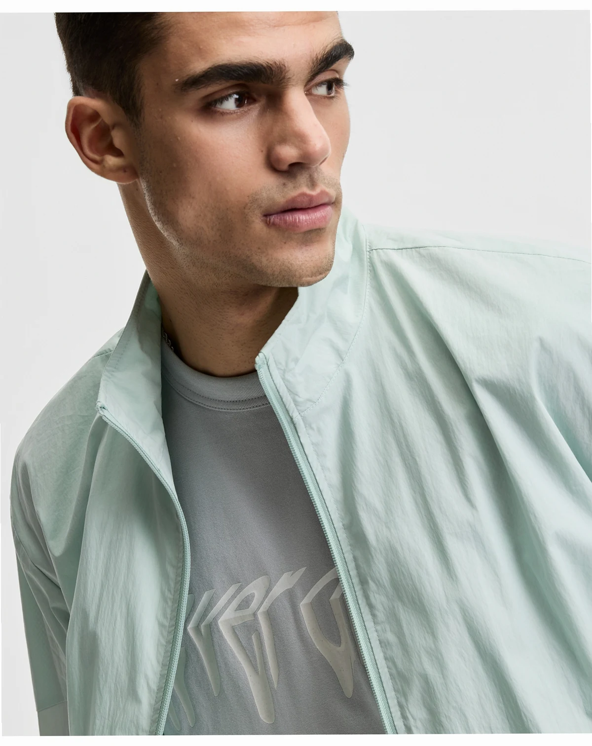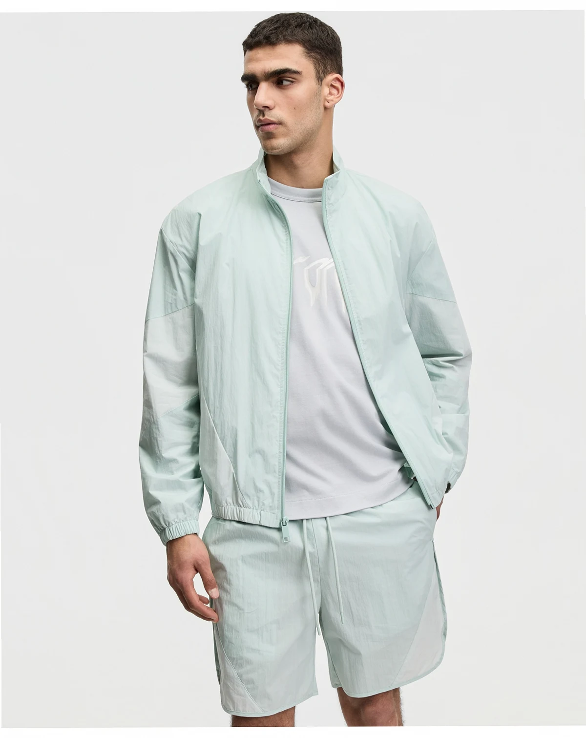 high-neck zip-front jacket