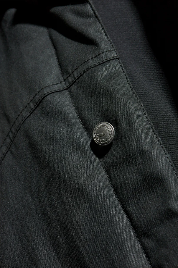 Functional snap closures etched with the designer’s logo