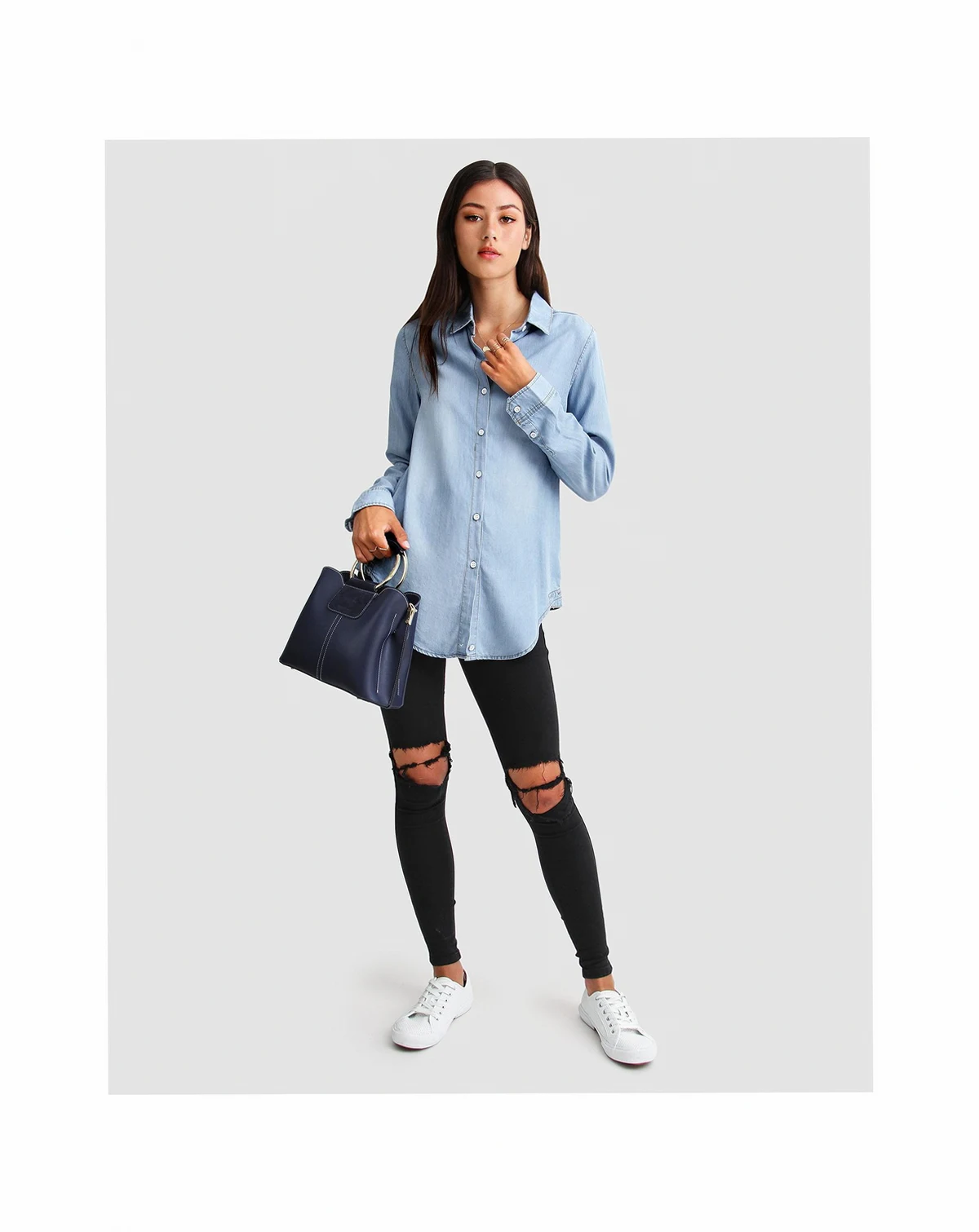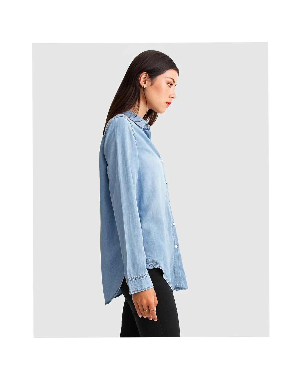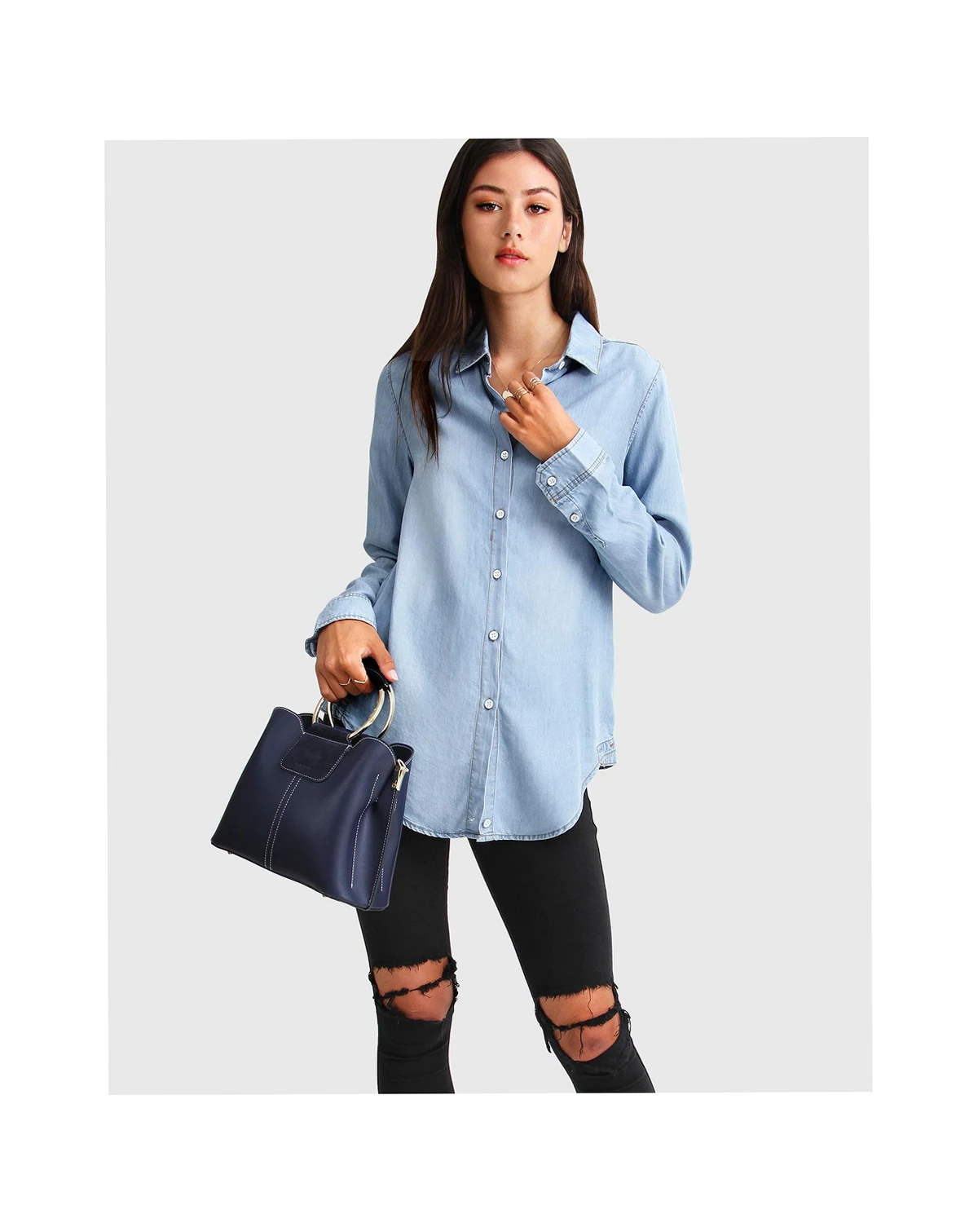 Made in lightweight denim, the Keep Me Wild Denim Top is an easy upgrade to a classic wardrobe staple. Button the bottom of the placket to the sides to create an effortless wrap look for a shorter top.