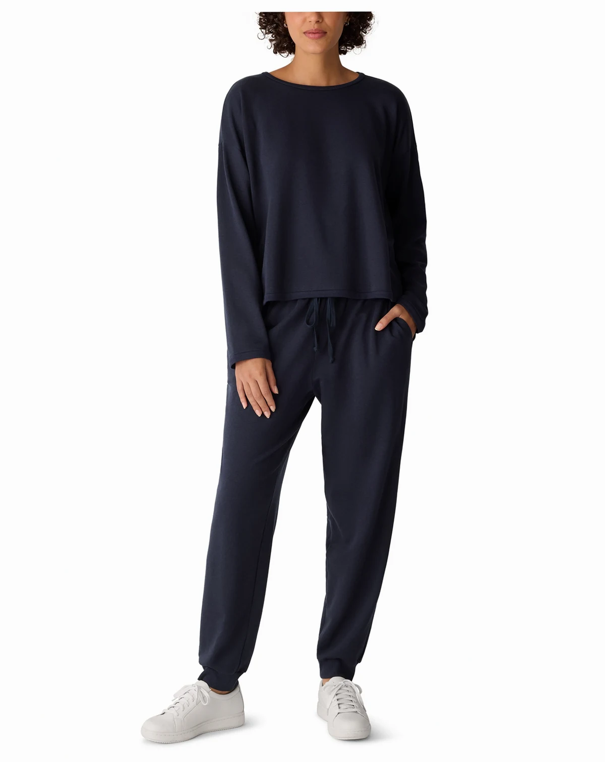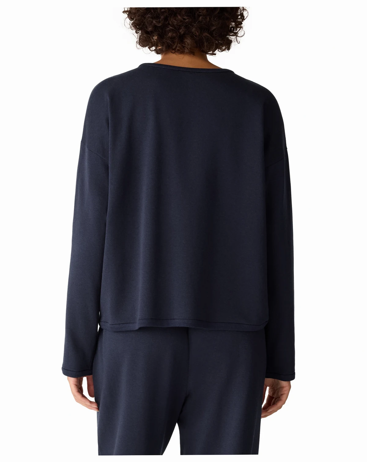 Embrace a cozy, cropped silhouette in this Eileen Fisher box top, featuring a soft, brushed interior for comfortable wear. The round neck and long sleeves offer a relaxed, modern fit.