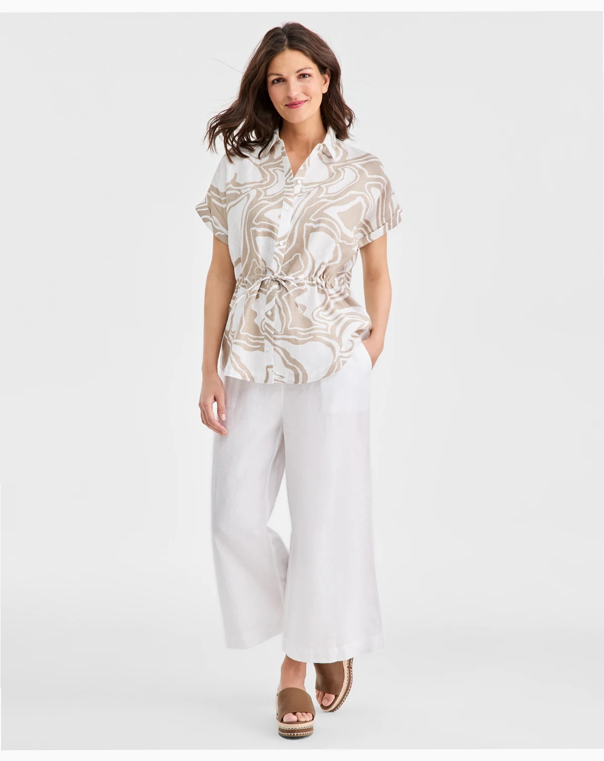 Women's 100% Linen Drawstring-Waist Top, Macy's Exclusive