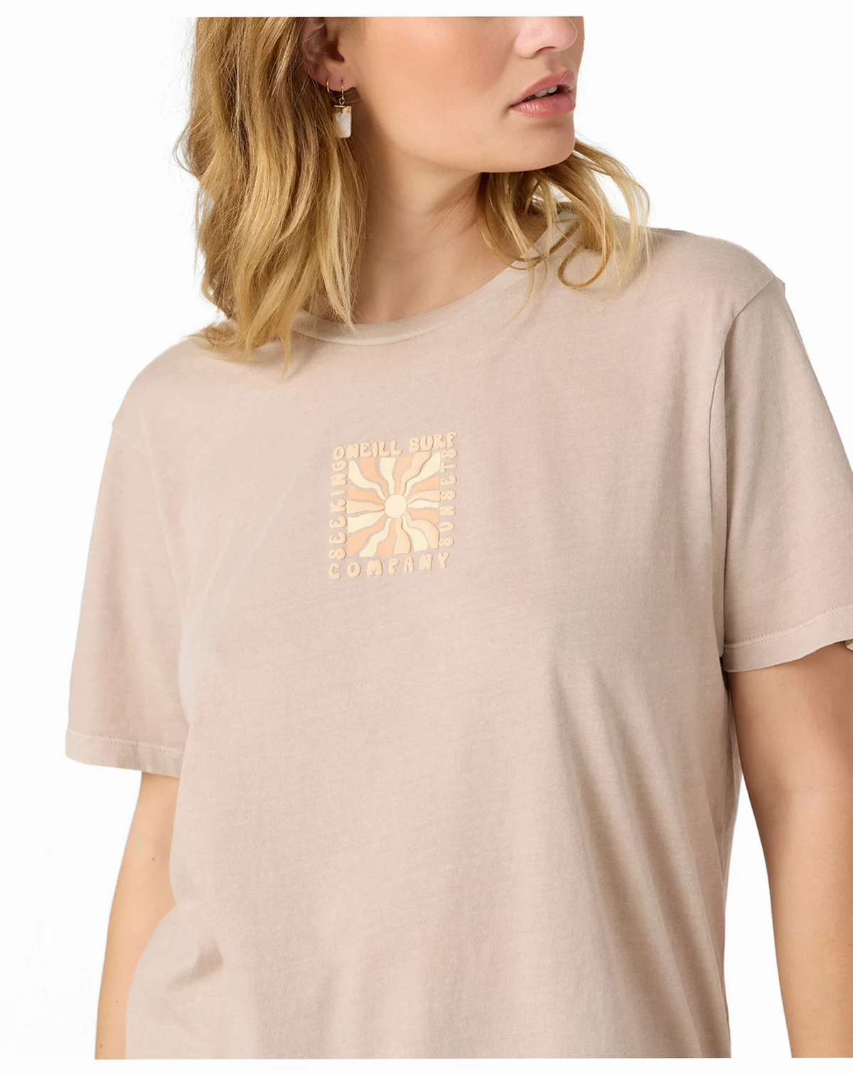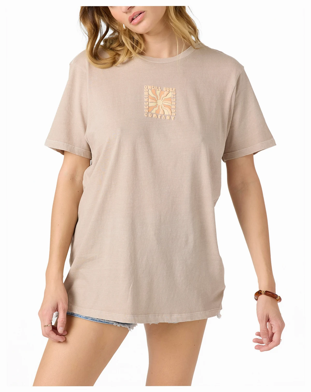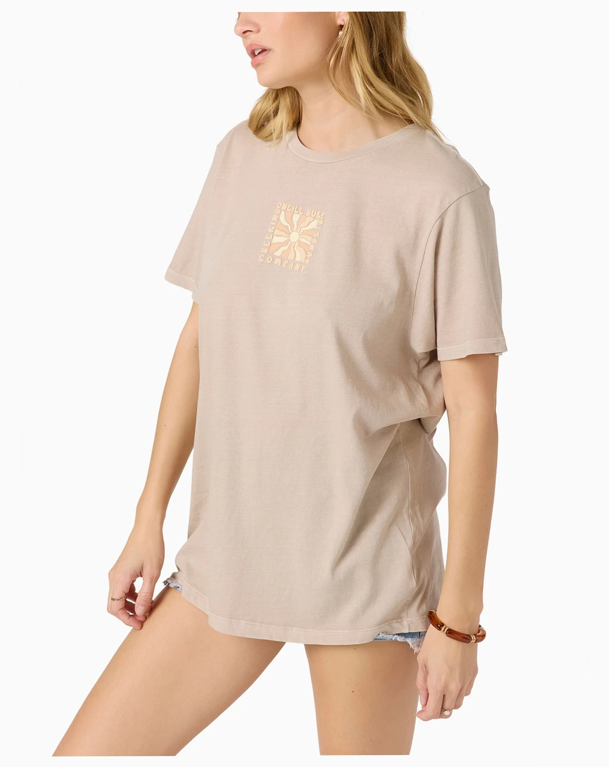 Show off a super cute oversized fit and soft design with a high-quality screen print on this O'Neill graphic T-shirt. The pigment dye and crewneck offer a trendy and comfortable casual top.