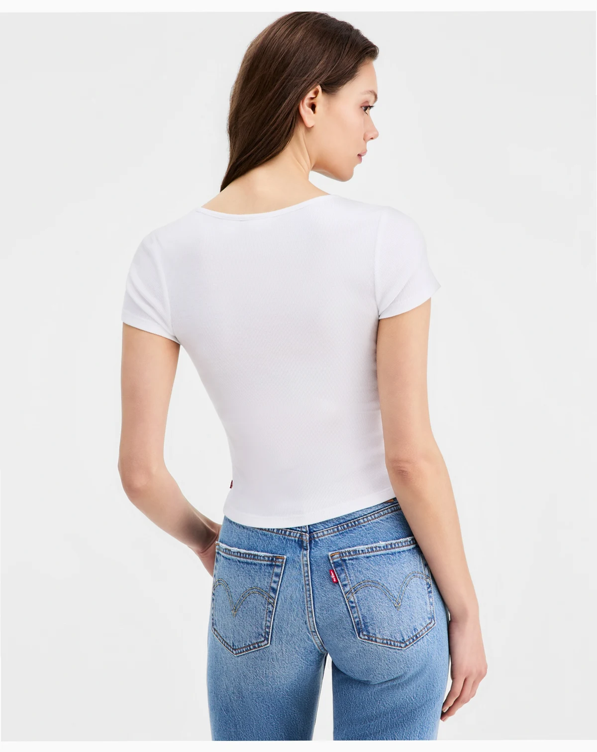 Classics like Levi's® Essential square neck tee never go out of style. Made with an ultra-flattering neckline and a fitted cut, this can be yo ur favorite vintage find—minus the hunt. After being cut and sewn, this piece was washed and garment-dyed. The result? Super-soft fabric with rich character that gets even better over time.
