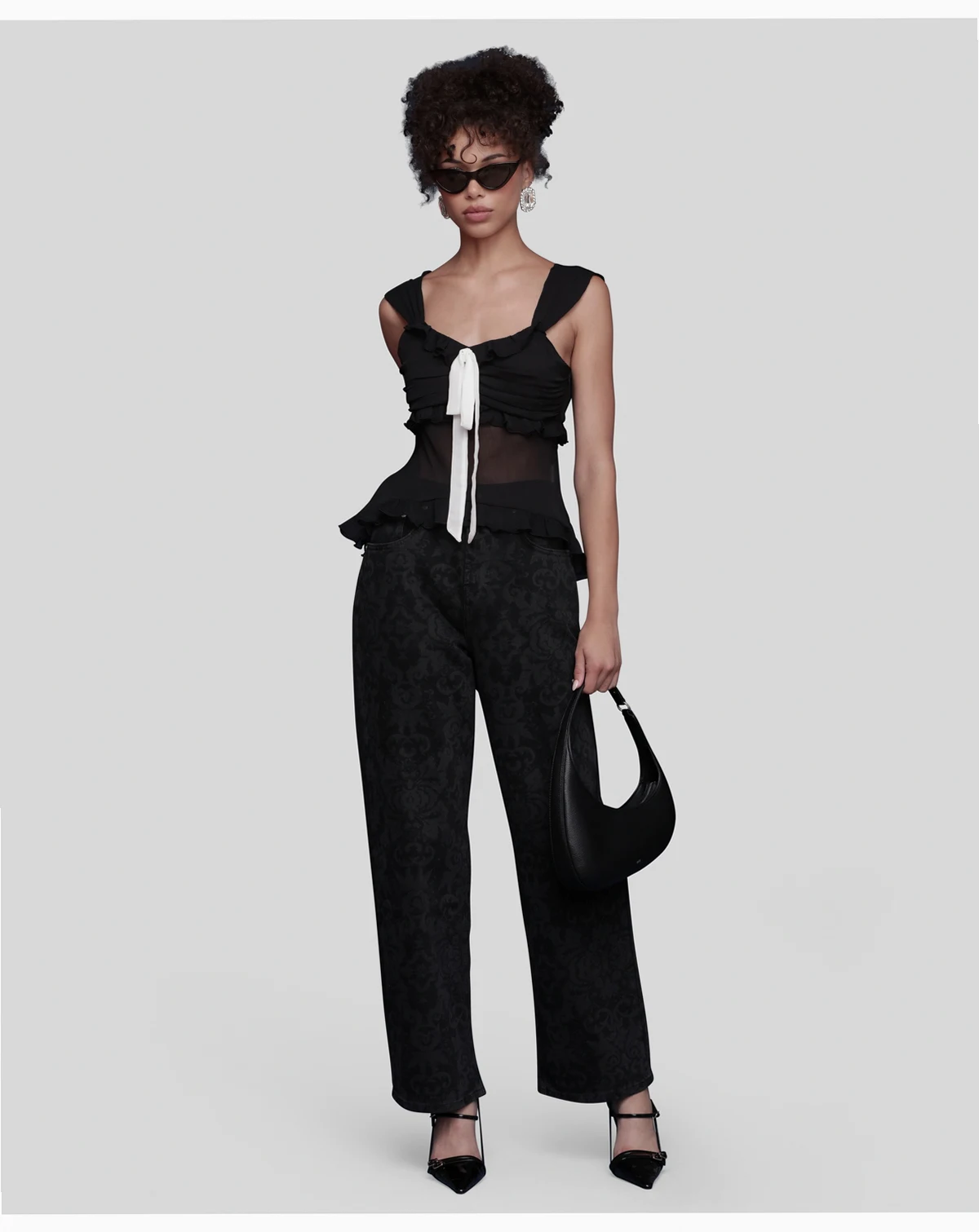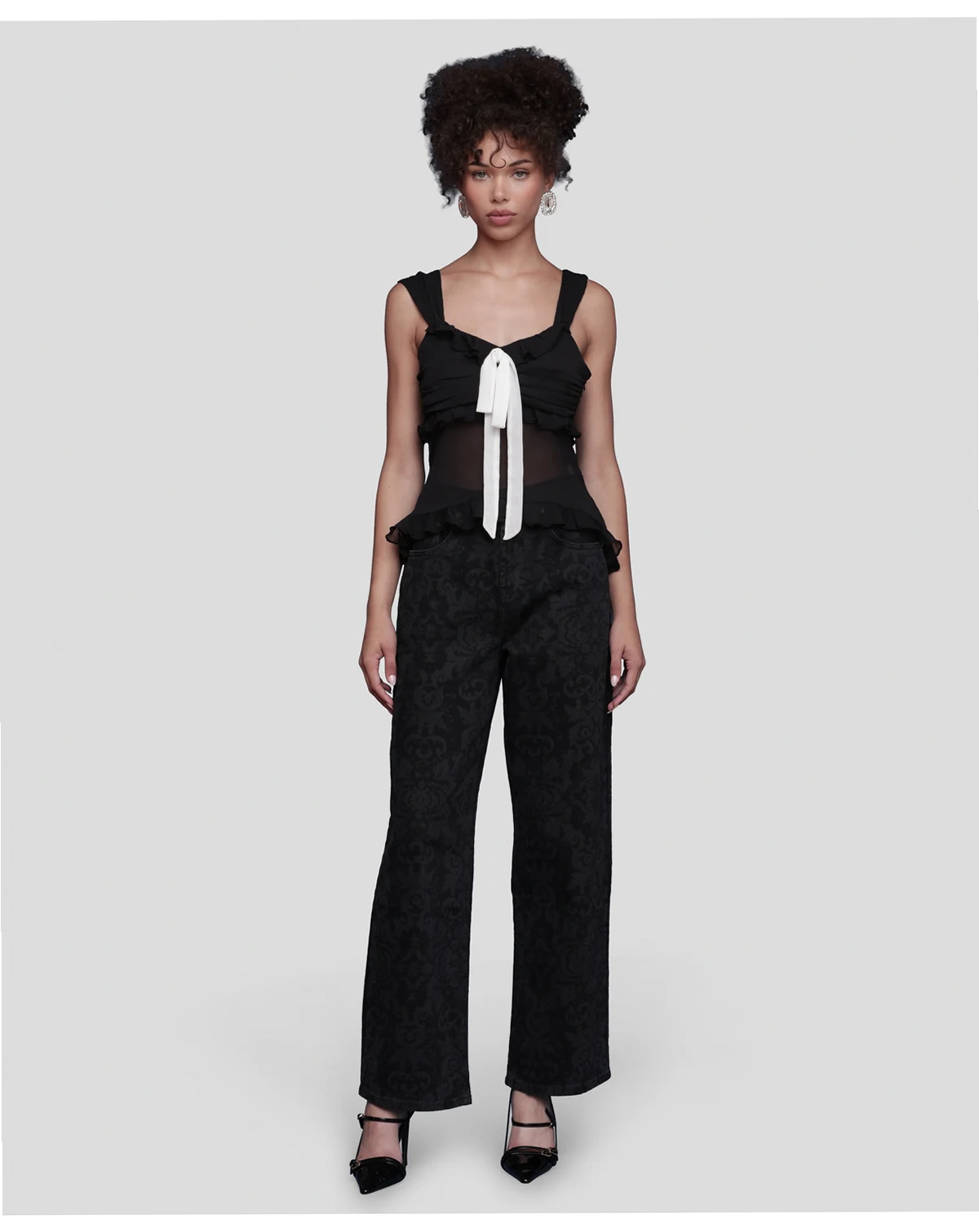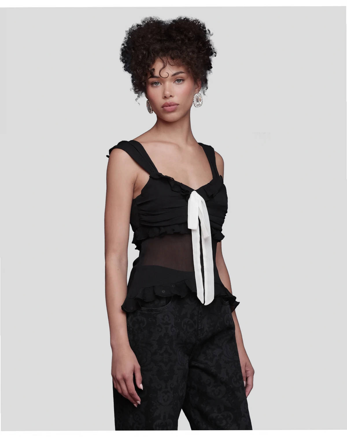 Adorned with a delicate ruffle and bow accent, this strap top from Avec Les Filles exudes playful charm. A sweetheart neckline creates a flattering and feminine frame.