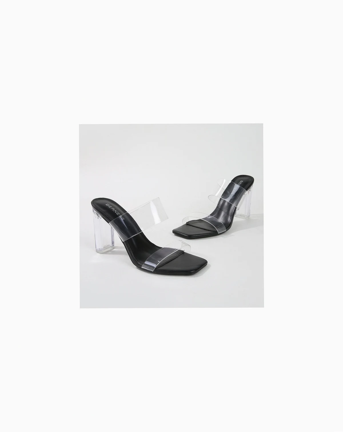 Effortlessly refined, these clear strap mules are the definition of understated elegance. With a clear block heel and barely-there silhouette, they create an illusion while pairing seamlessly with any outfit.