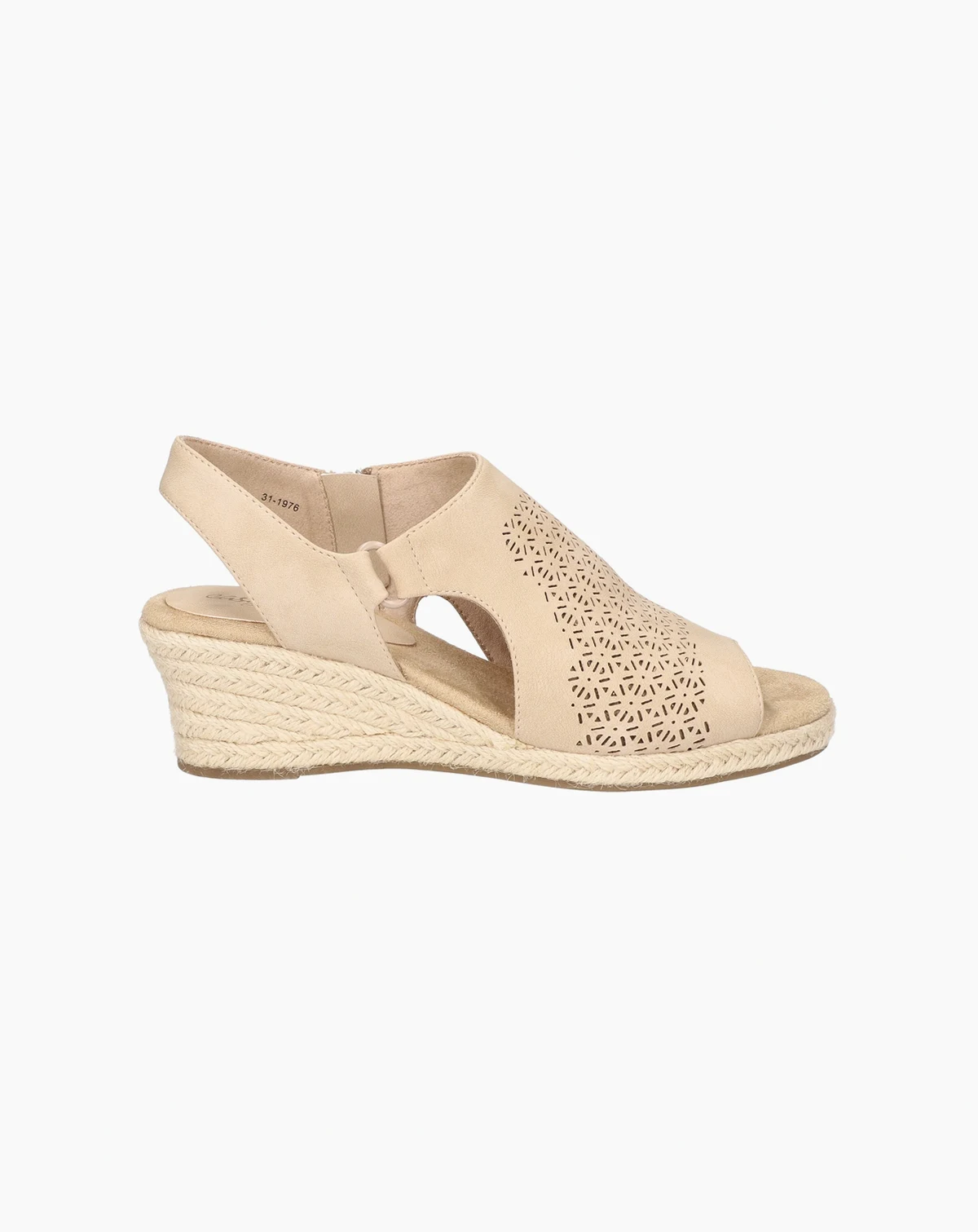 The Serena by Easy Street is a new espadrille that offers a refreshing twist. Designed with a fashionable perfed upper, the Easy Street super flexible comfort wedge and a well-padded heel-to-toe insole make this sandal the perfect fusion of style and comfort. The convenient inside zipper allows for effortless on and off.