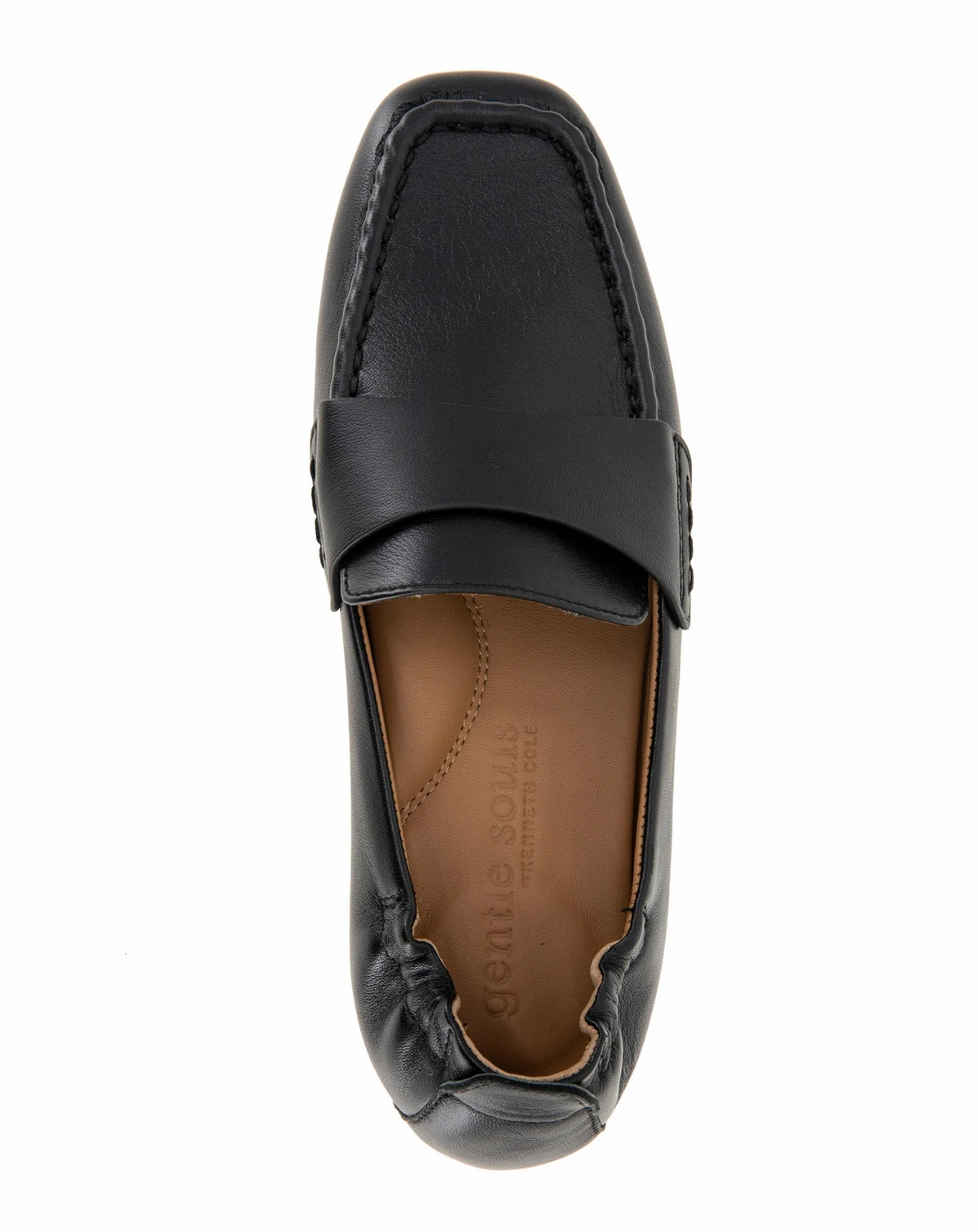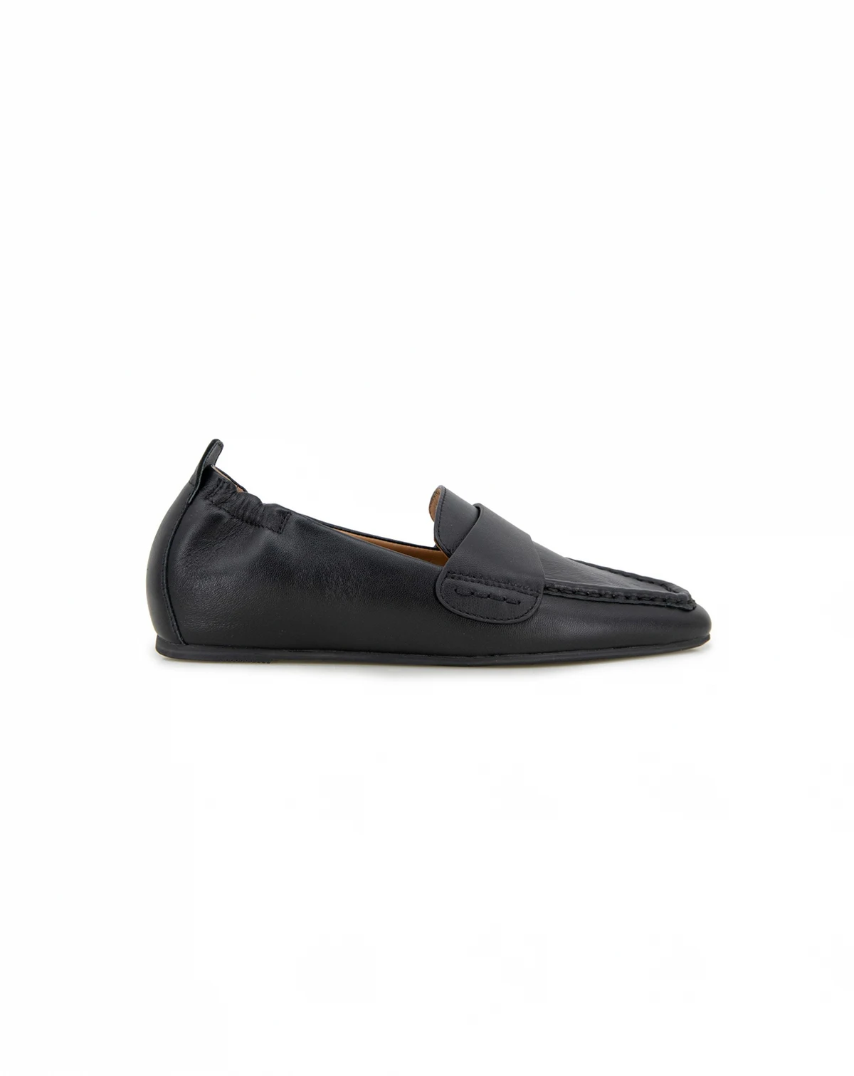 Square toe loafer. Multi-layered comfort system utilizing poron performance cushioning.