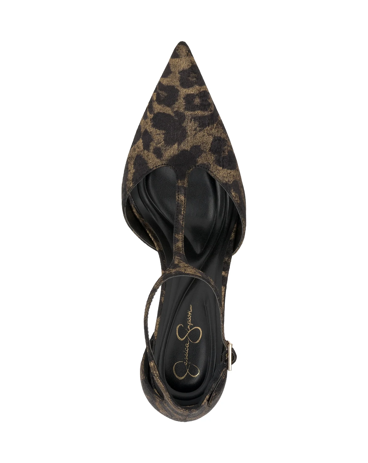 Not your typical pumps, this sky-high style from Jessica Simpson sits on a daring stiletto heel with a chic T-strap and buckle closure to finish the look.