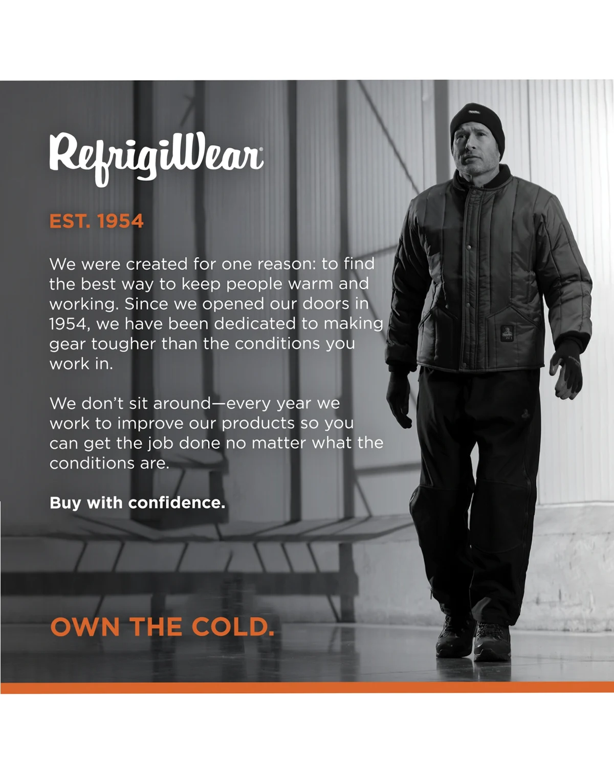 The RefrigiWear Cooler Wear Jacket is a classic that puts a premium on affordable comfort and warmth. The Cooler Wear Jacket is hip-length with multiple features including insulated hand warmer pockets, insulated knit collar and a storm flap that covers the zipper. This is a great work jacket with plenty of extras, giving you peace of mind if you're facing cool or even cold environments. Looking for something that keeps out the cold, protects you from changing weather, and resists wear and tear? The Cooler Wear Jacket is just what you need at a value you can't beat. Sizing Instructions: For the most accurate fit, take your measurements over the base layer of clothing you intend to wear with this RefrigiWear gear (such as thermal underwear, jeans or a sweatshirt) and refer to the size chart for this product.