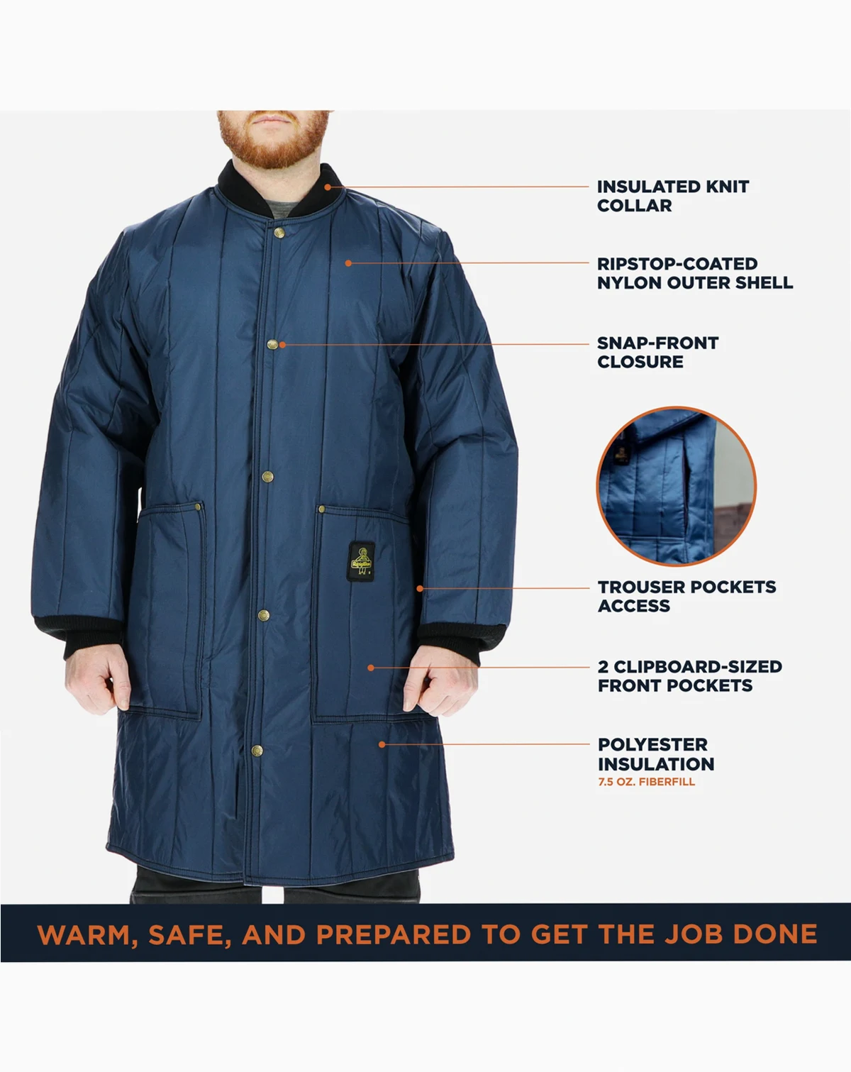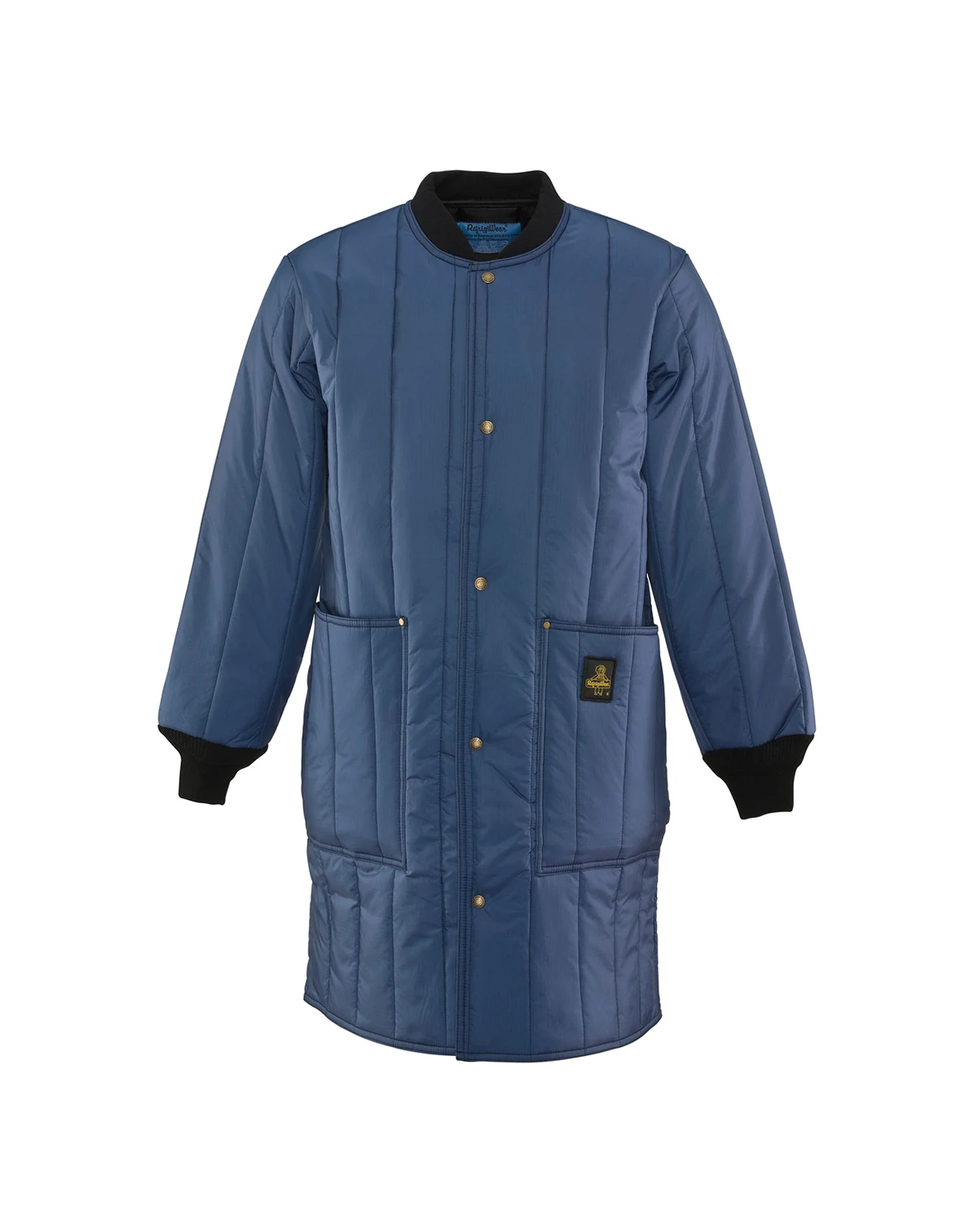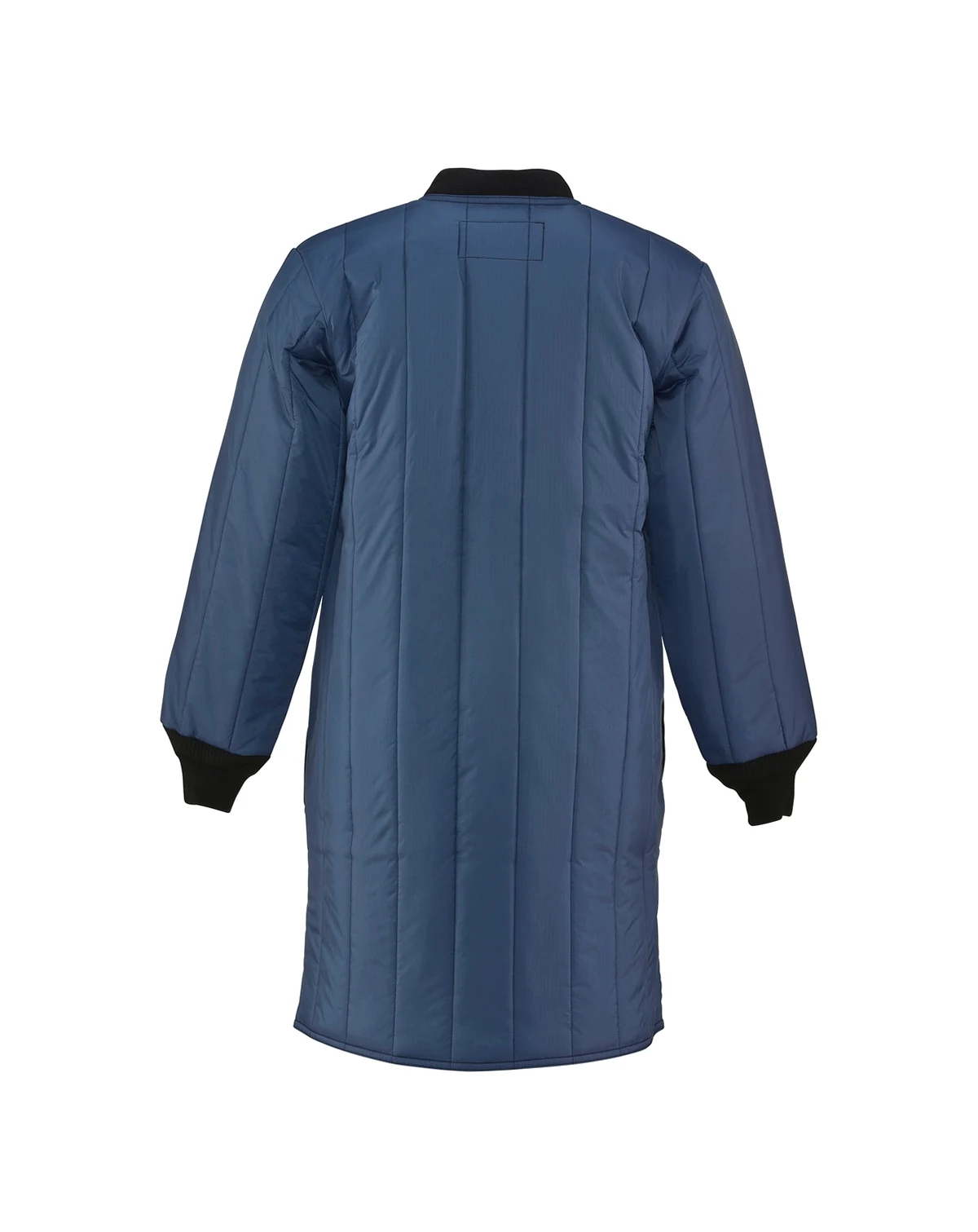 Working in the cold can be a challenge when you don't have the right coat. The RefrigiWear Cooler Wear Frock Liner is Comfort Rated to 0°F, features a knee-length design for maximum coverage, and fits perfectly under frocks or lab coats. With clipboard-sized pockets, convenient side seam openings for easy-access to bibs or pants pockets, an insulated knit collar and snap-front closure, this is the liner you need when the job gets cold. Maximum functionality. Maximum coverage. When you're trading the office or lab for the freezing cold, the Cooler Wear Frock Liner has you covered. Sizing Instructions: For the most accurate fit, take your measurements over the base layer of clothing you intend to wear with this RefrigiWear gear (such as thermal underwear, jeans or a sweatshirt) and refer to the size chart for this product.