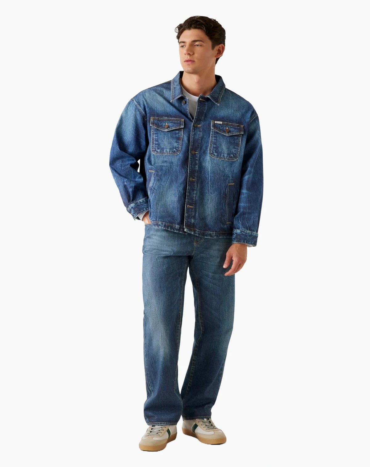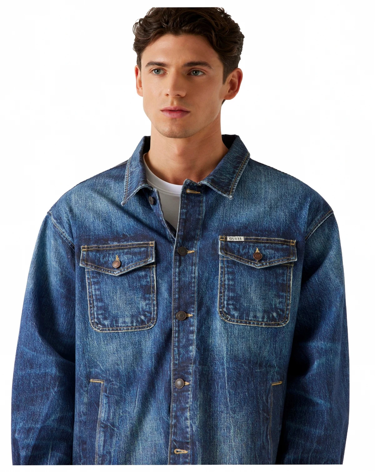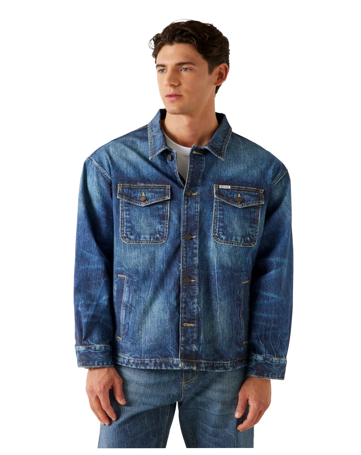 The signature Billy trucker jacket from GUESS delivers a rugged outerwear look that pairs effortlessly with your T-shirt collection for an endless array of ensembles.