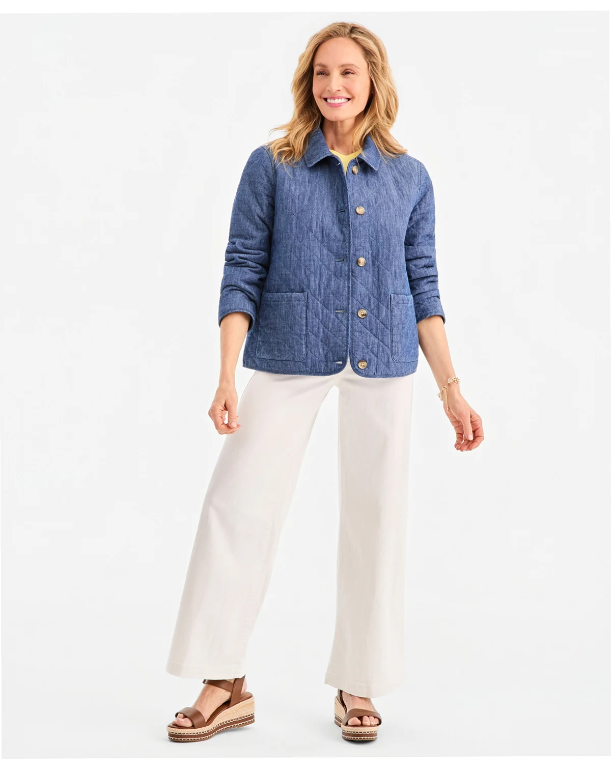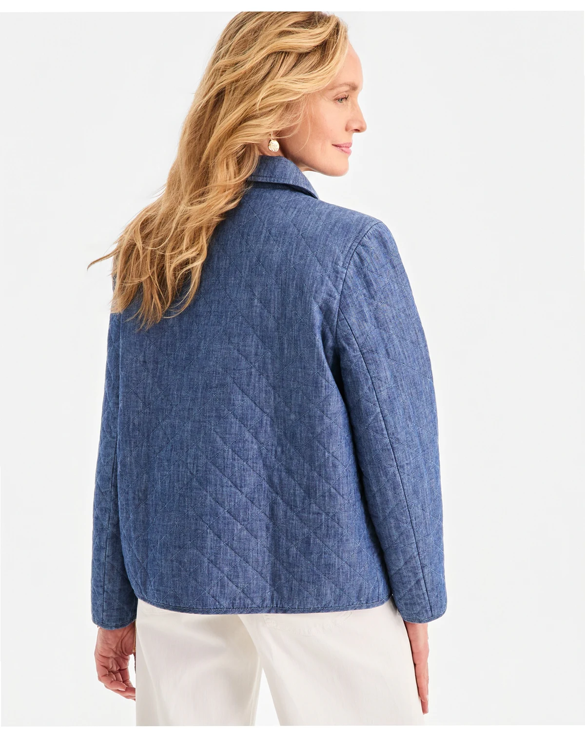 This quilted jacket by Style & Co features a classic button-front closure and a lightweight, cotton finish. Its diamond-quilted pattern provides subtle warmth and a polished look, making it an ideal layering piece for transitional weather.