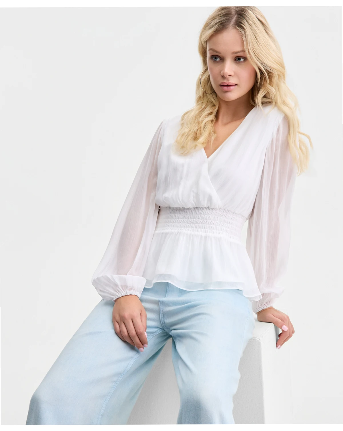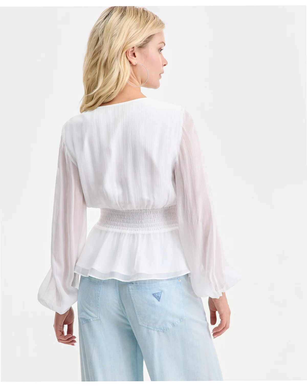 Feminine and flattering, GUESS' Mishka Chiffon Blouse features a wide, gathered waist to accentuate its peplum hem.
