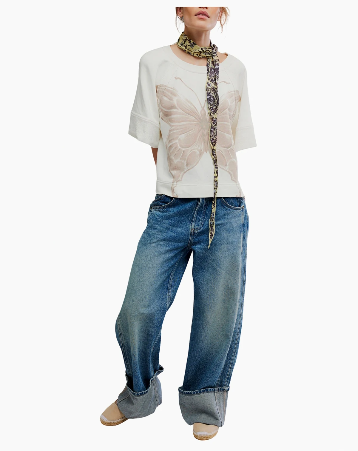 Add a whimsical touch to your wardrobe with this Free People Dahlia pull-on top, highlighting a bold butterfly graphic that stands out as a statement feature. Short sleeves provide easy, breathable comfort, while the scoop neckline offers a soft, flattering finish perfect for everyday styling. ABOUT THE BRAND: If you love the laid-back charm of boho-chic apparel, you'll find a beautiful selection from Free People at Macy's that suits your style. From ultra-feminine dresses to cute tops, browse the collection of casual, hip designs.