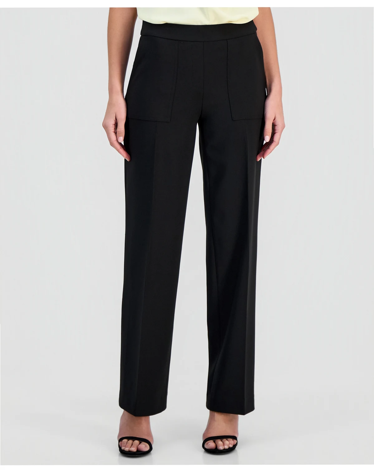 Modern ease defines these Anne Klein petite wide-leg pants, styled with a mid-rise fit and pull-on style that supports all-day comfort. Full-length proportions and four functional pockets add practicality while preserving a relaxed, polished look.