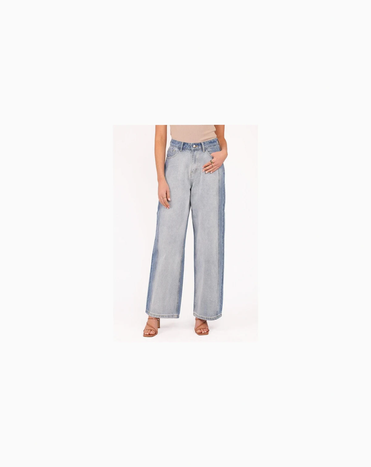 Step up your style game with the Yuri Wide Leg Jeans in Two Tone Blue. Designed with a bold and on-trend wide-leg silhouette, these jeans make a statement while keeping you effortlessly comfortable.