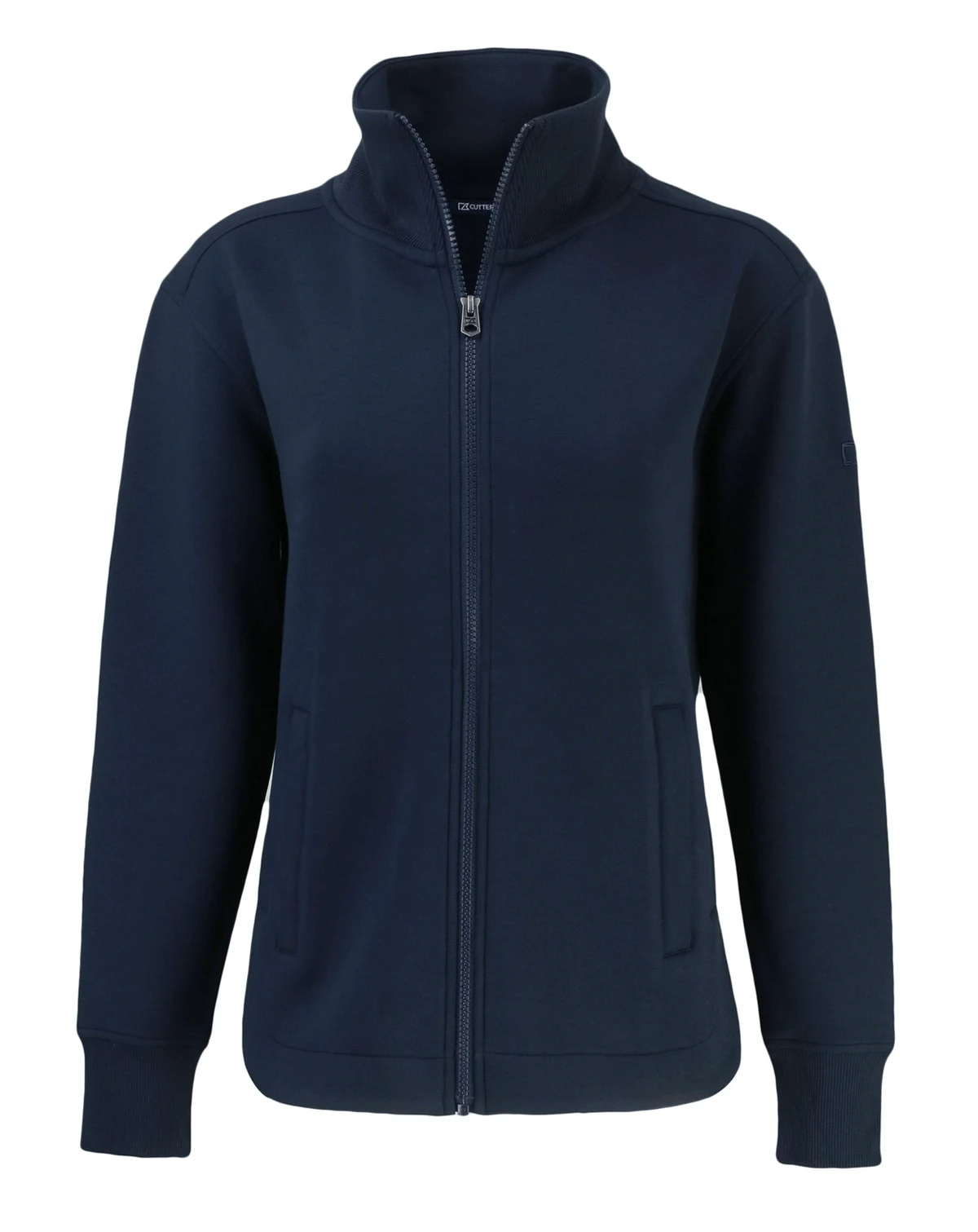 The iconic Roam Full Zip Womens Long Sleeve Jacket delivers exceptional versatility—your go-to, year-round layer for work, golf, tennis, travel, and everyday adventure. Crafted in a buttery-soft double-knit interlock, it offers lightweight warmth, a smooth modern feel, and effortless comfort. Secure zip pockets keep essentials close, while the mid length silhouette makes it easy to style for any activity. Unlined design for easy layering.