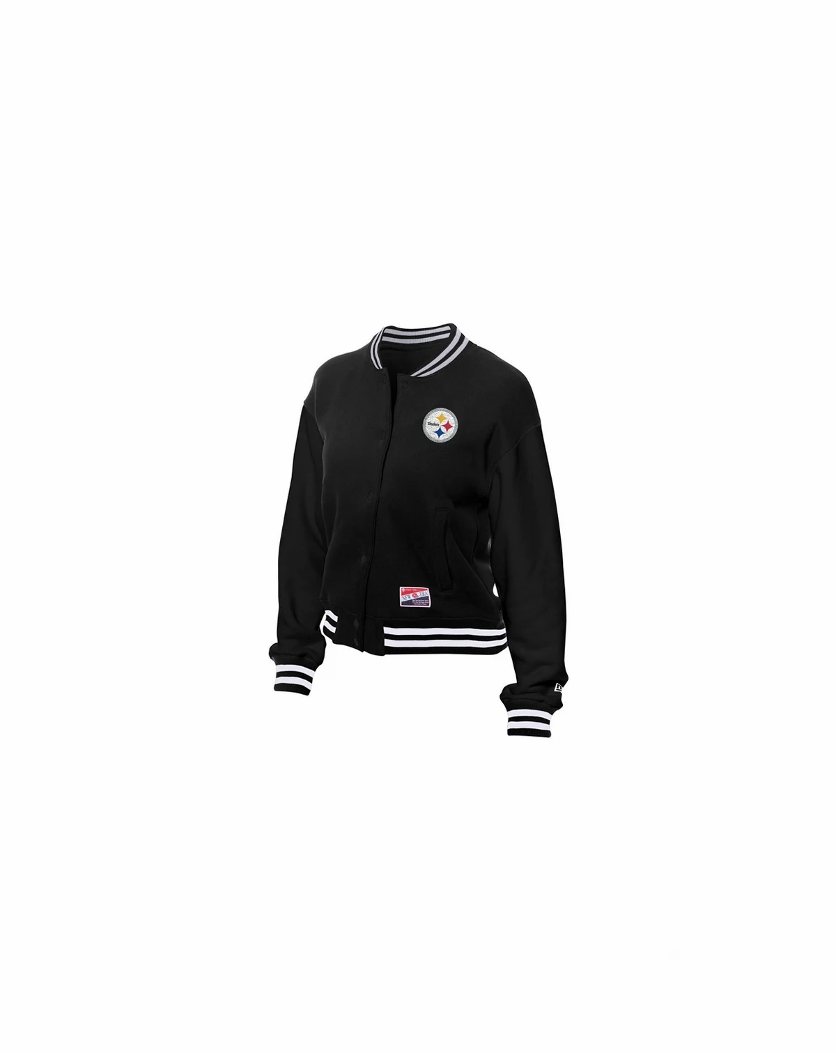 Show your timeless team pride in this Pittsburgh Steelers Throwback Fleece Full-Snap Jacket from New Era. This midweight jacket is suitable for moderate temperatures, perfect for layering up on game day. The embroidered chenille applique team logo on the left chest showcases your Pittsburgh Steelers pride in vintage style.