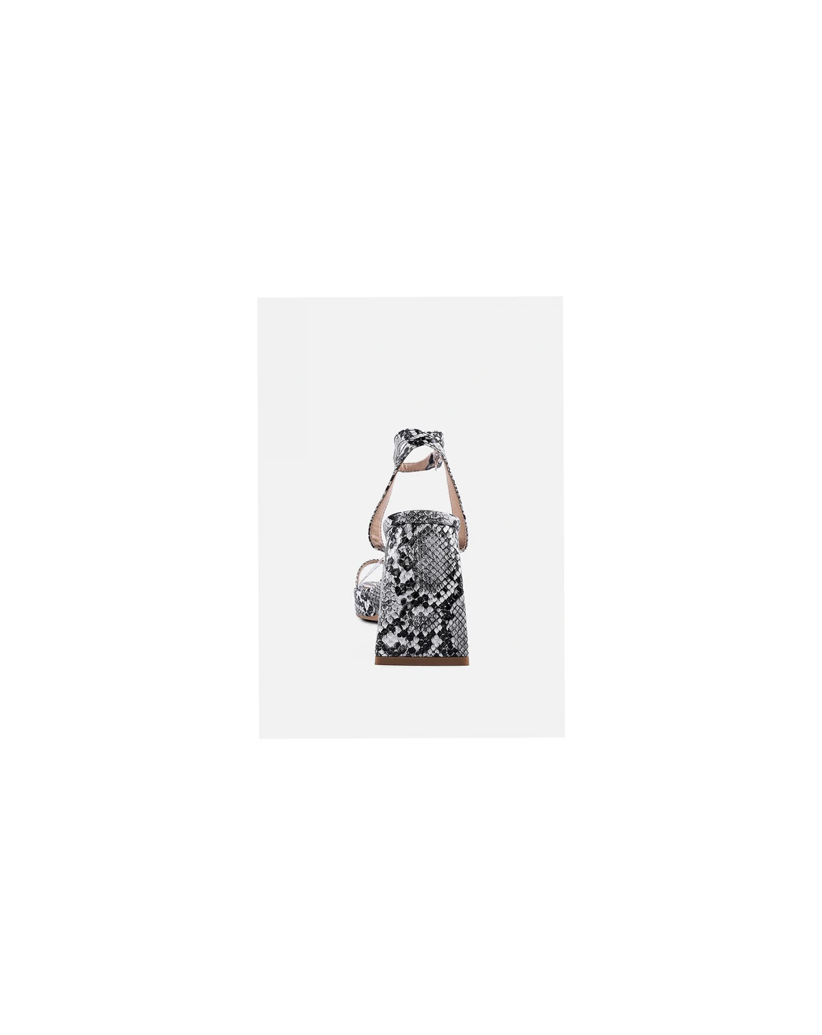 The sandals boast a simple silhouette adorned with an eye-catching snakeskin print. They feature a clear front strap and toe ring that provide a secure fit for your feet. The ankle band, with its pin-buckle fastening, adds an extra layer of security. With chunky block heels, these sandals are a trendy style and a must-have statement piece for this season. Type: Sandals Outer Material: Snake Print Faux Leather Light Cushion Insoles Outer Sole: TPR Open Square Toe Toe Ring Detail Translucent Vamp Strap Chunky Platform Sole Ankle Strap Sandals Pin Buckle Fastening Traingular Block Heels SH2812