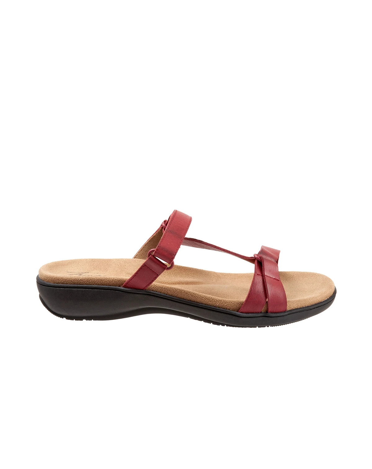 Slim leather straps with asymmetric adjustability gives sporty appeal to Raja sandal. Raja also features a soft, comfortable footbed and flexible sole.