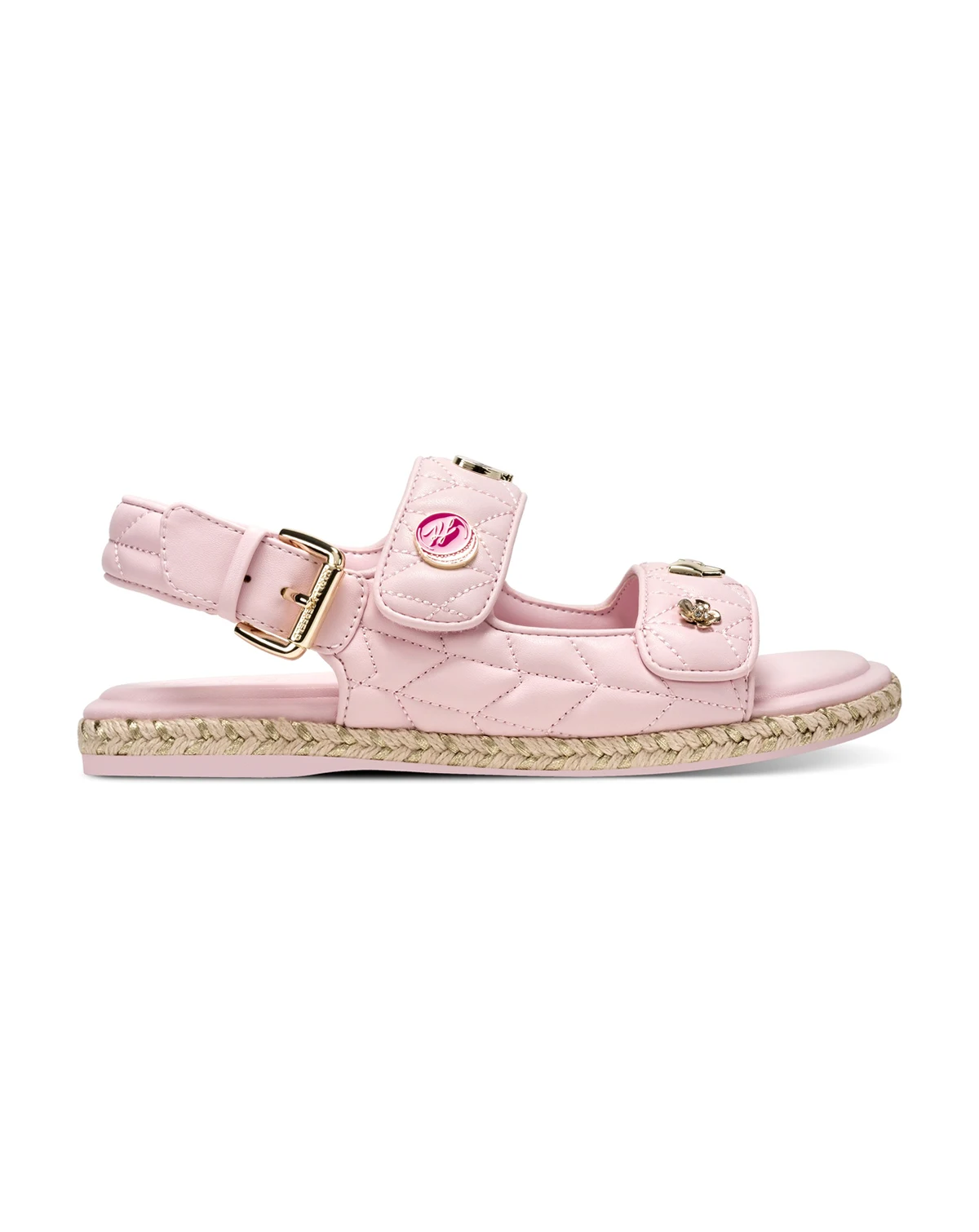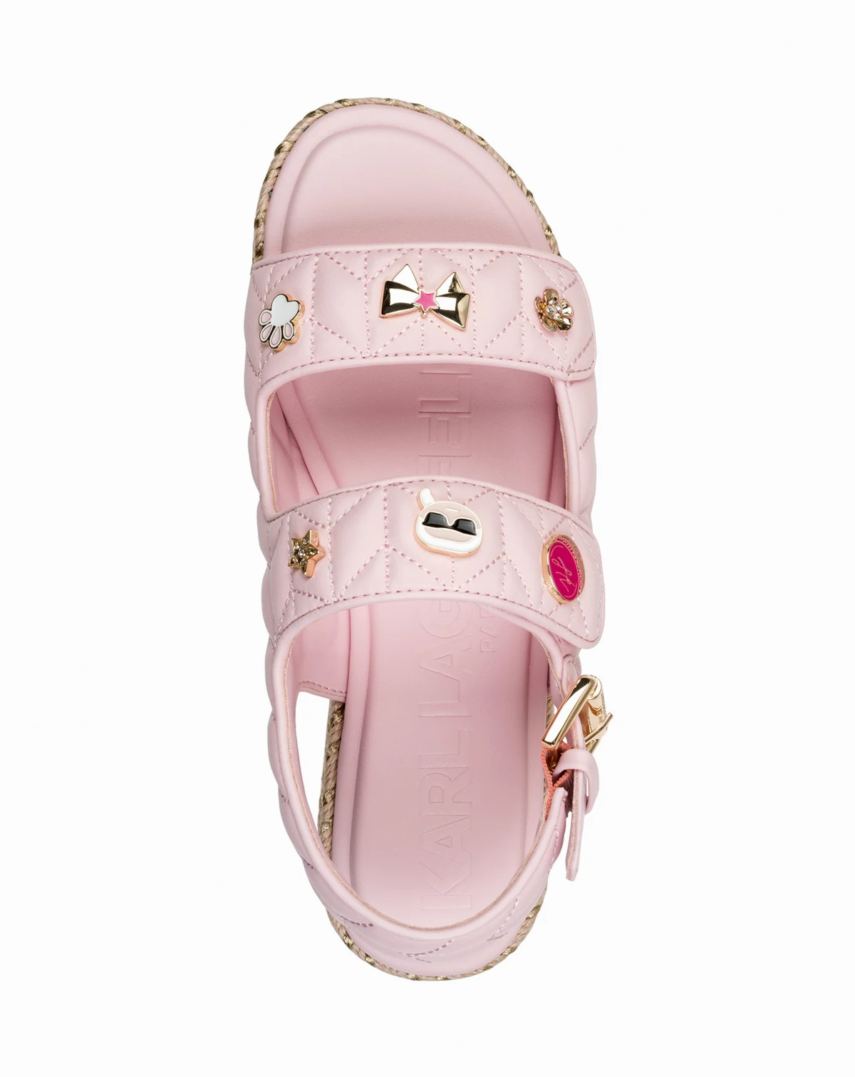 The Charlay Macaron sandals from KARL LAGERFELD PARIS brings playful elegance with quilted straps and signature charms that infuse a touch of designer whimsy into any warm-weather look.