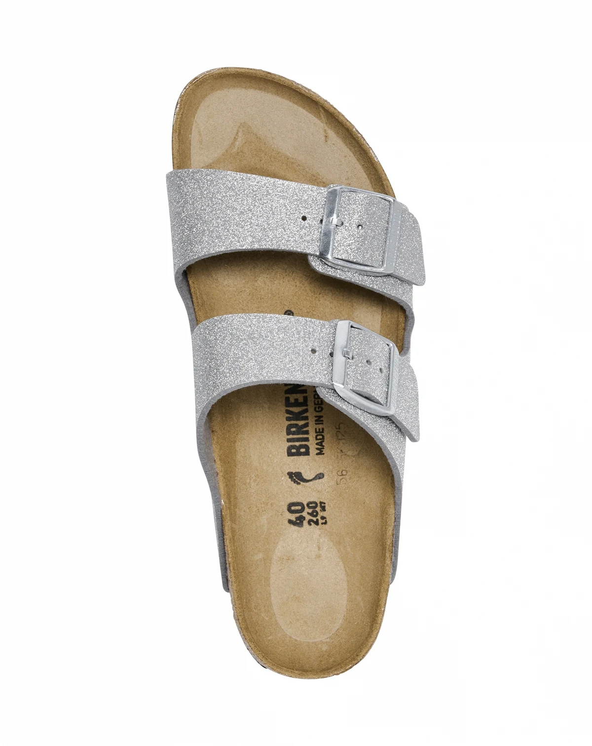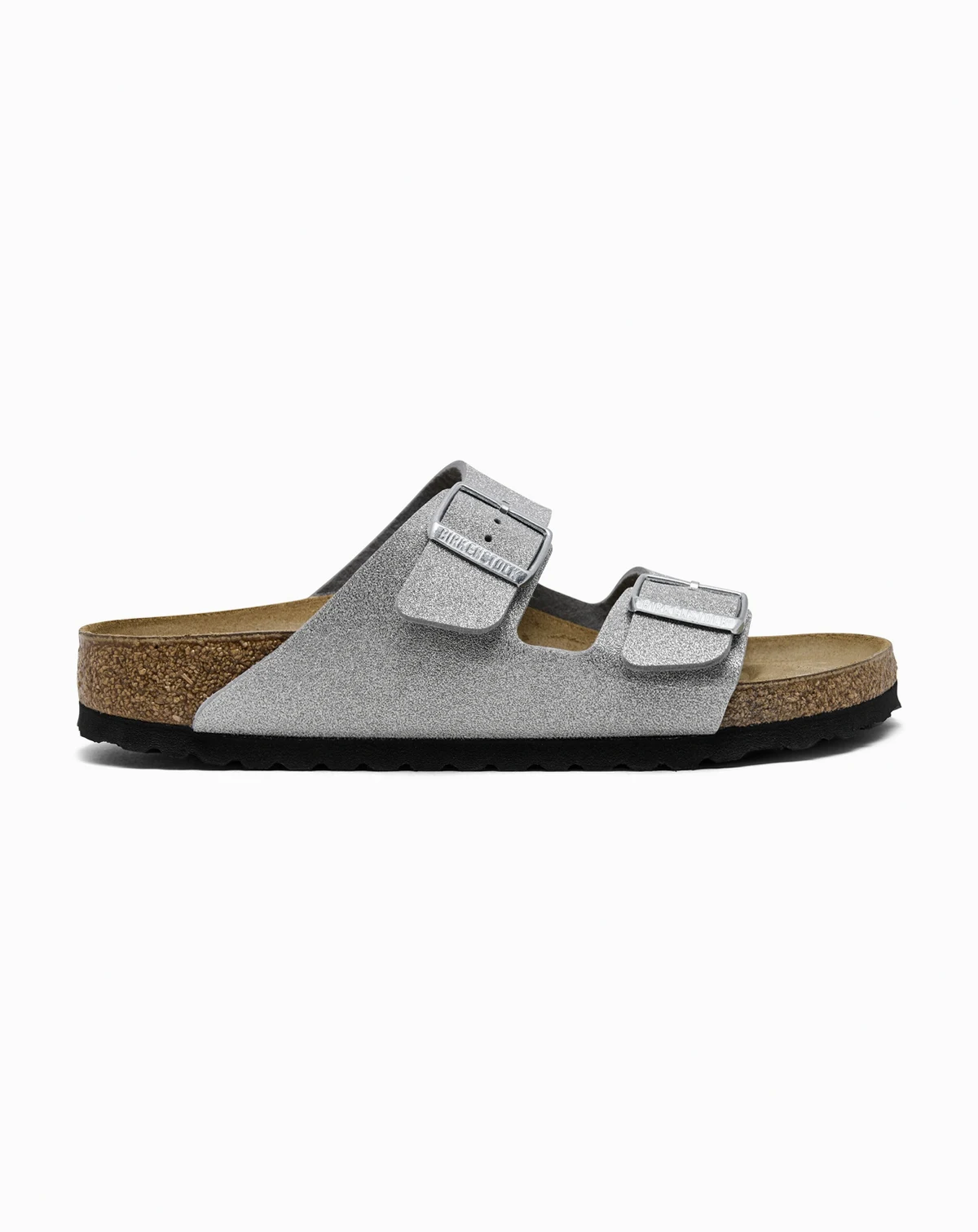 Certified in comfort and casual style, these Birkenstock Women's Arizona Synthetics Sandals are sure to be the shining star of your sandal selection. Crafted with a glittering synthetic upper, this dual-strap silhouette is lined with suede and is equipped with an anatomically shaped cork-latex footbed—offering comfort that lasts and glitzy sparkle in every step.
