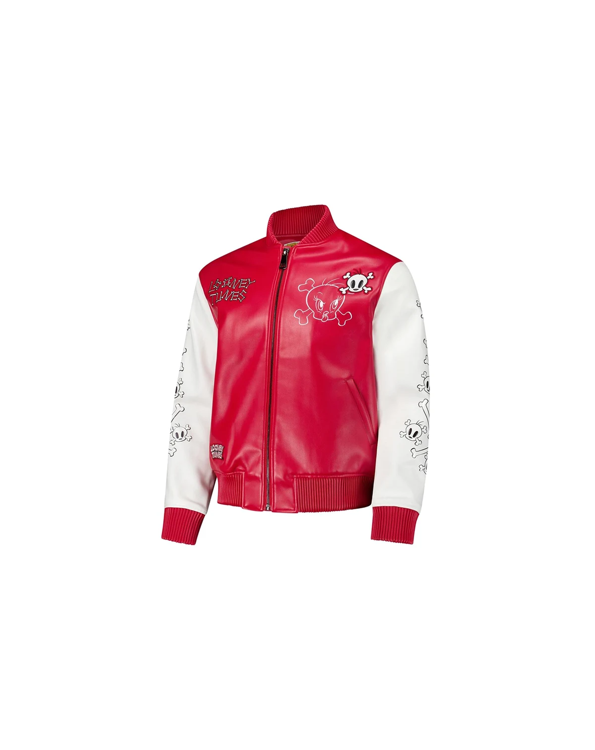Bring home a Looney Tunes classic with this Tweety Bones Full-Zip Varsity Jacket from Freeze Max. This varsity jacket features a bold design of the beloved canary that'll make you say, "I tawt I taw a Tweety Bird". A shell, fabric lining and heavyweight build offer lasting warmth and comfort in colder temperatures.