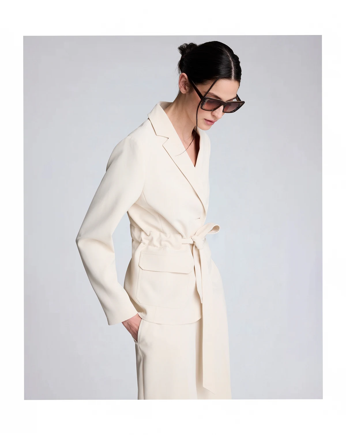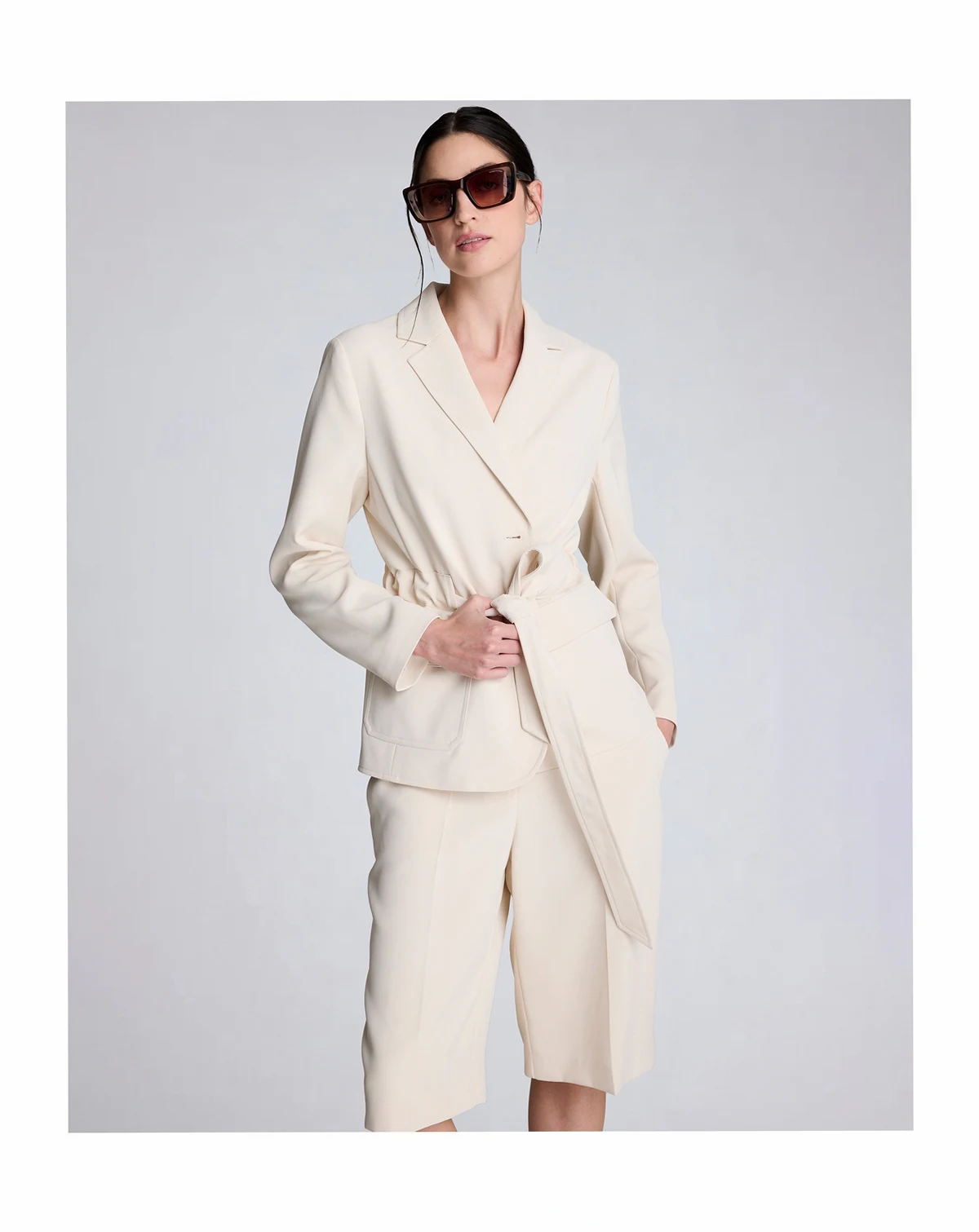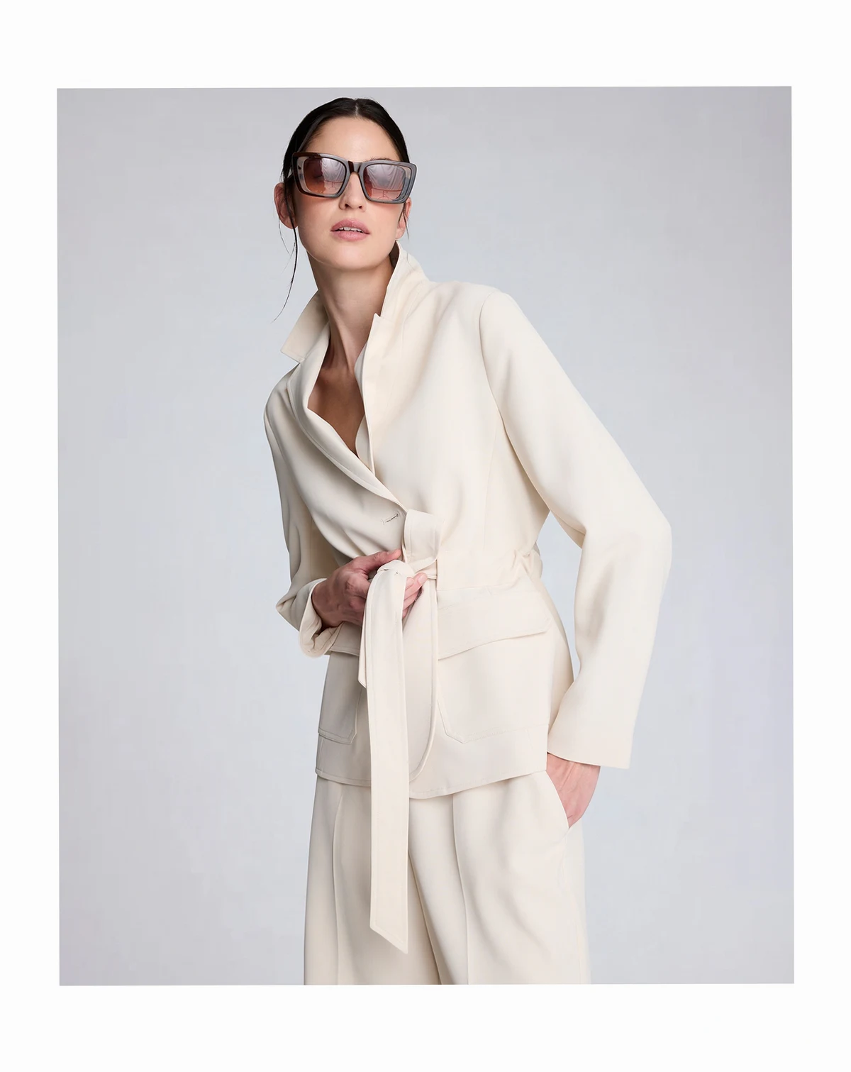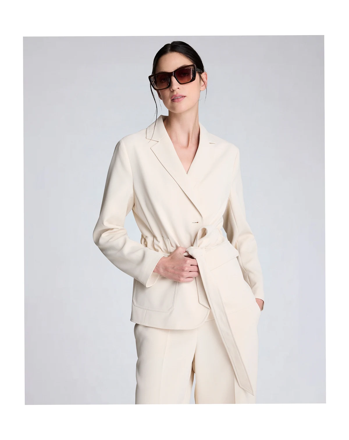 Defined by a belted patch pocket design, this Kenneth Cole jacket offers a vision twill construction with a notched collar. The button-front closure and long sleeves create a structured yet adaptable outer layer.