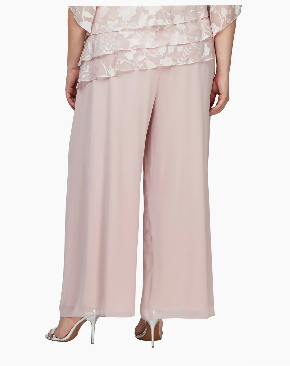 Approx. model height is 5'10" and she is wearing a size 1X; Approx. inseam: 28-1/2"; Mid rise; relaxed fit through hips and thighs; wide leg