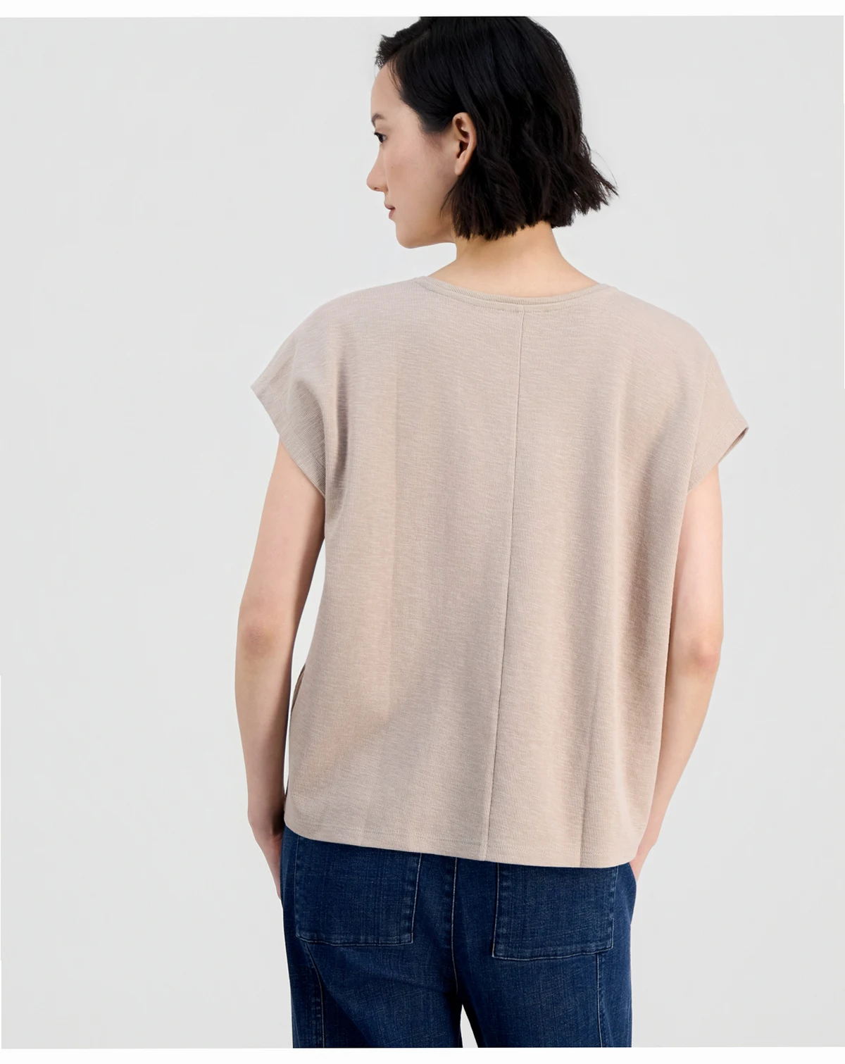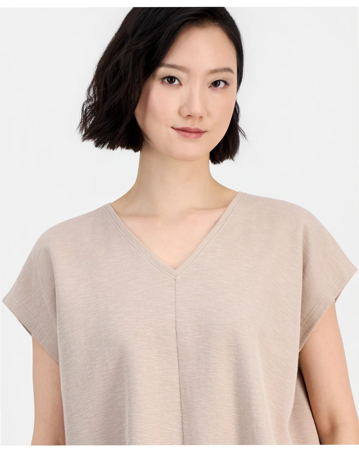 Eileen Fisher's boxy cotton tee is a versatile layer designed with a classic V-neck and breezy cap sleeves.