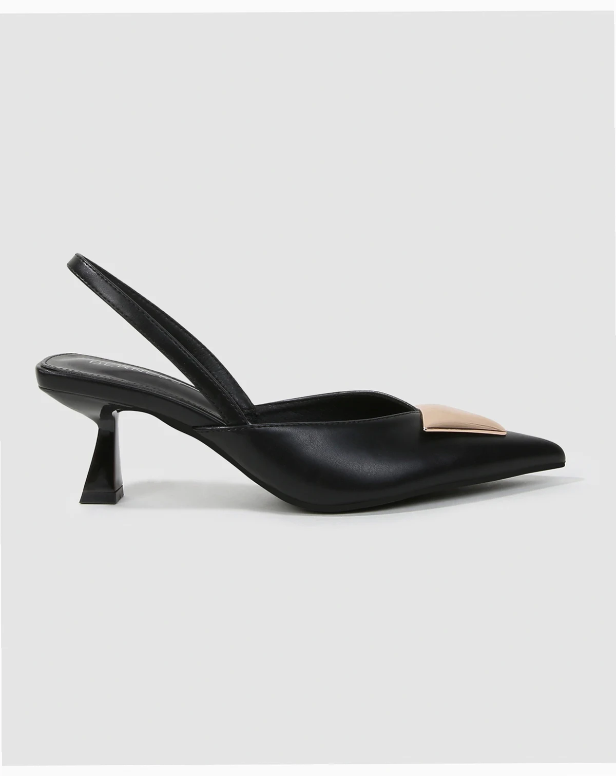 Sleek and modern with a refined edge, Cielo pointed toe slingback pumps are accented with a polished gold-tone trapezoid. The sculpted heel and streamlined silhouette make them an effortless choice.