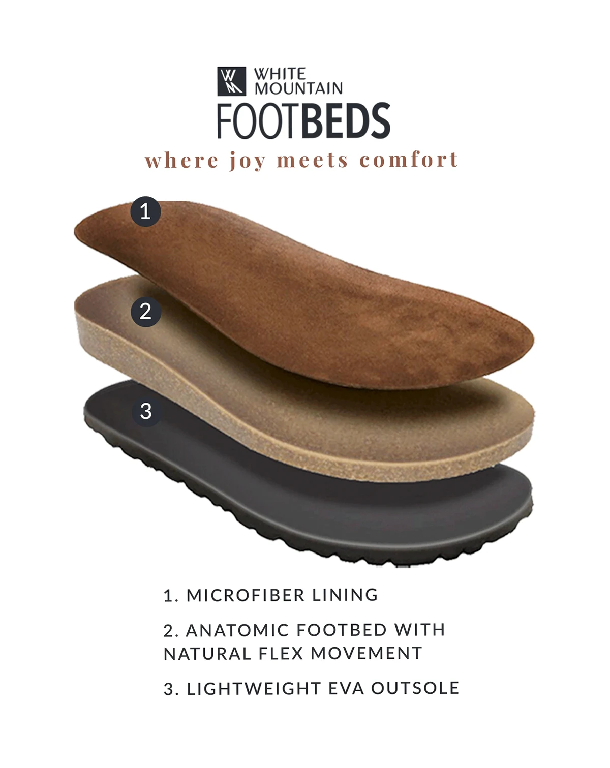 The Crawford thong by White Mountain footbeds sandal features a single braided strap with adjustable buckle. The contoured footbed with heel cup provides ultimate comfort for you to wear all day everyday.
